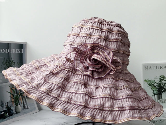 Features an inner drawstring or strap for a secure and customized fit.Women Hat Style Flower Packable Large Wide Brim Hat Adjustable HatElegant Floral Decoration