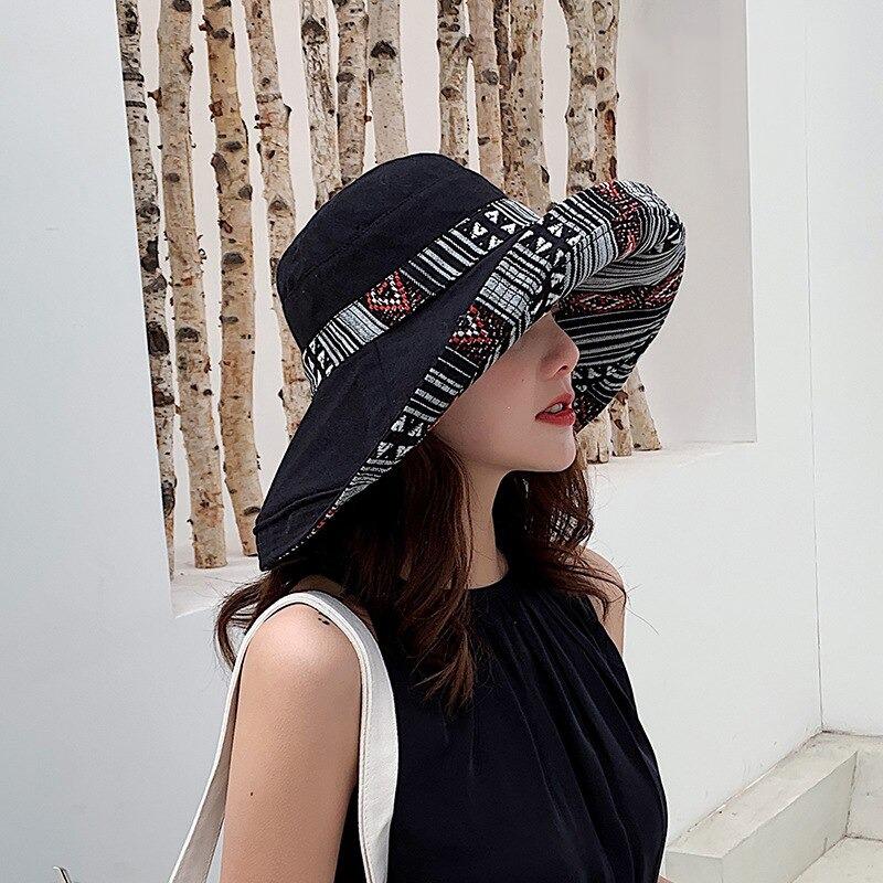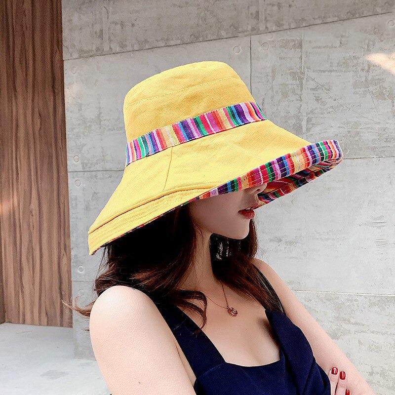 Women's Hat Bucket Hat Big Brim Double-Sided Women's Sun Hat