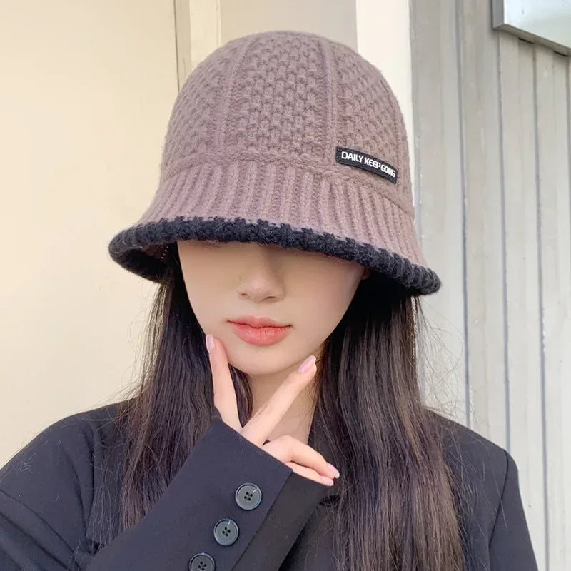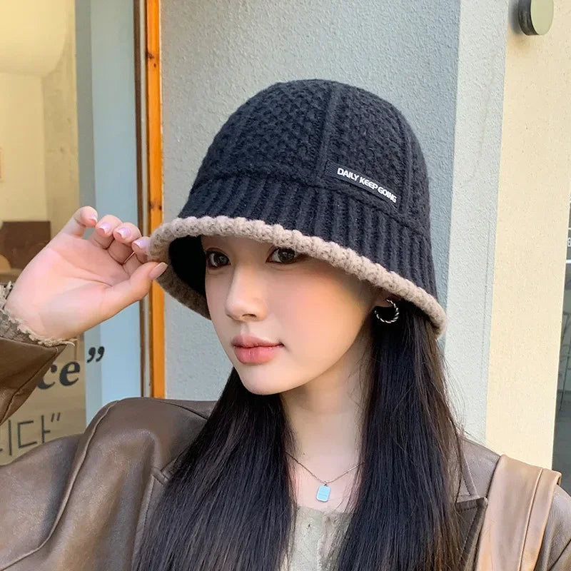 Winter Knitted Bucket Hat Warm Beanie for Women in Retro Style