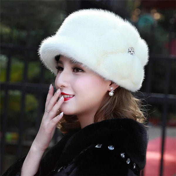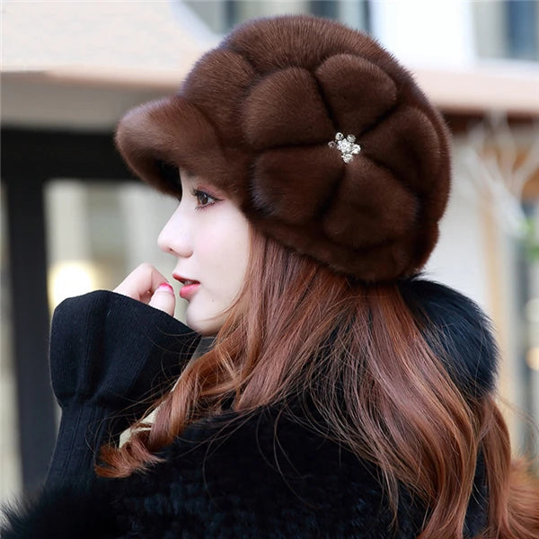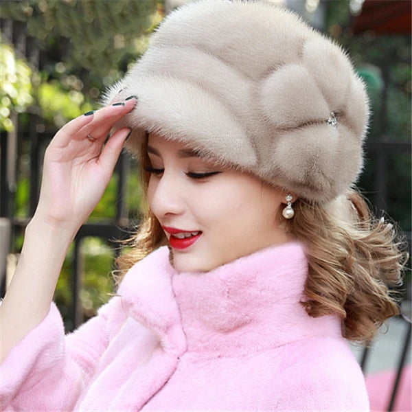 1 * Natural Whole Fur Winter Cap Warm Fashion Real Mink Fur Hat