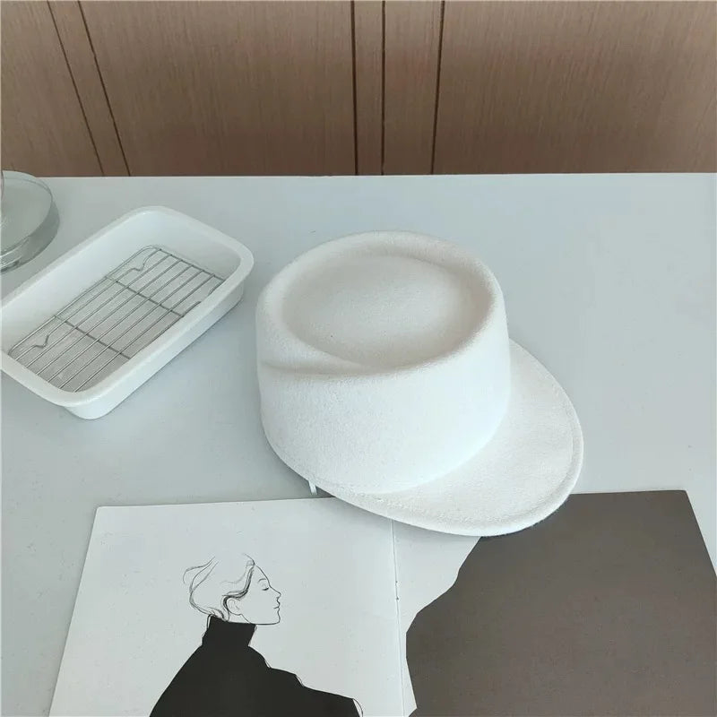 1 * Concave Top Fedora Wool Knight Hat Winter Punk Style Top Hat