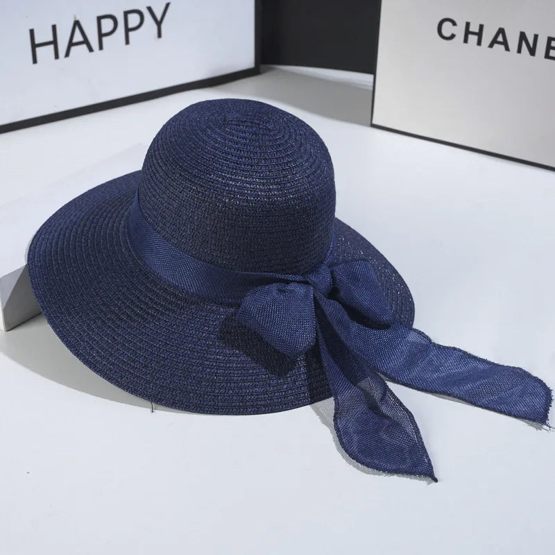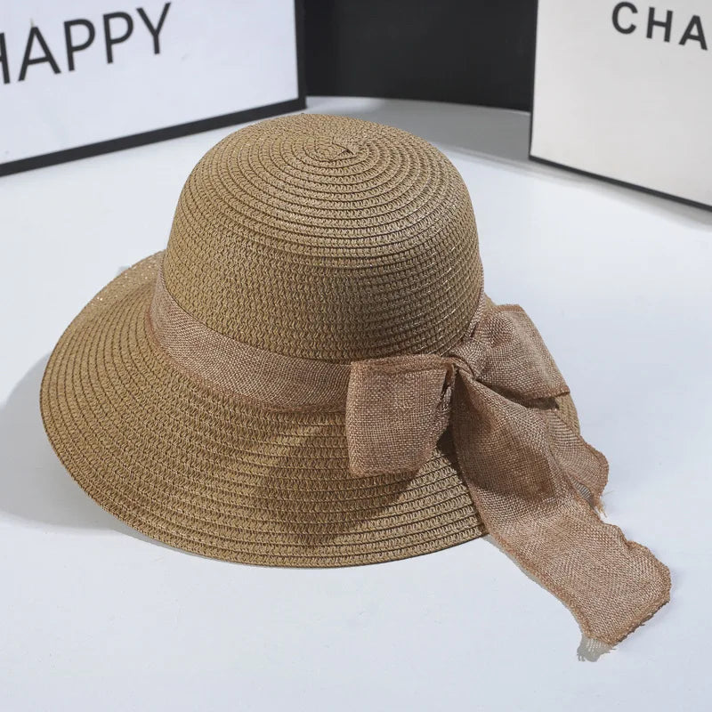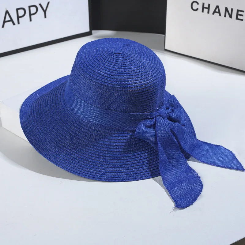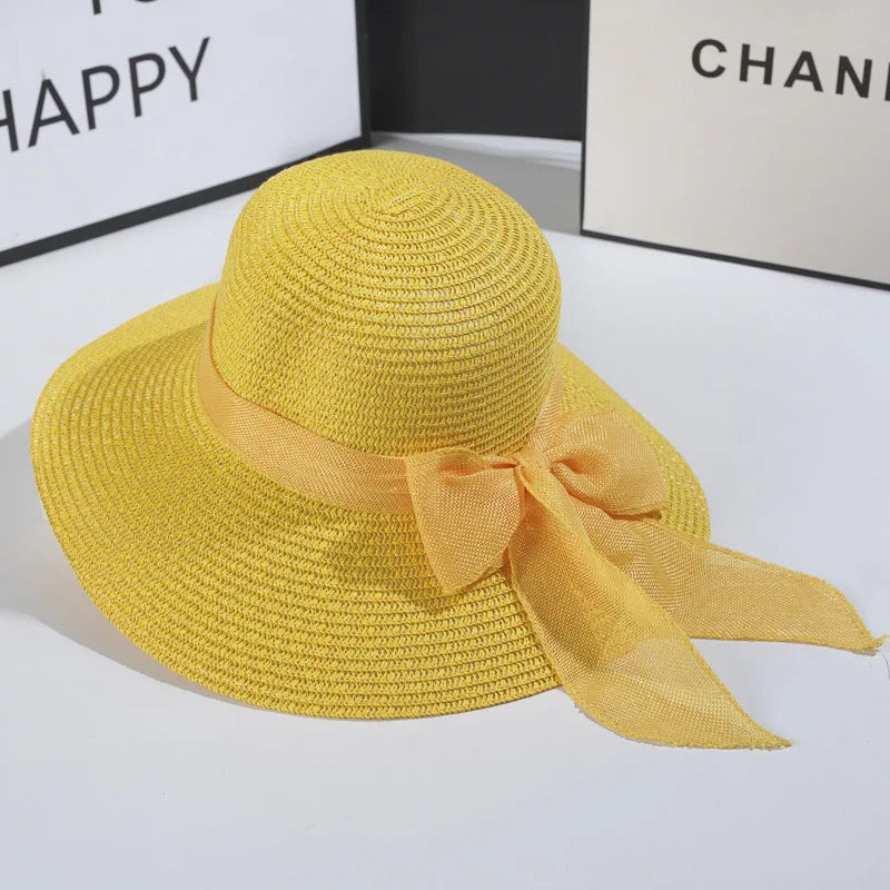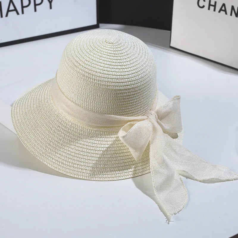 Straw Beach Hat with Ribbon Sun Protection Summer Outing Hat