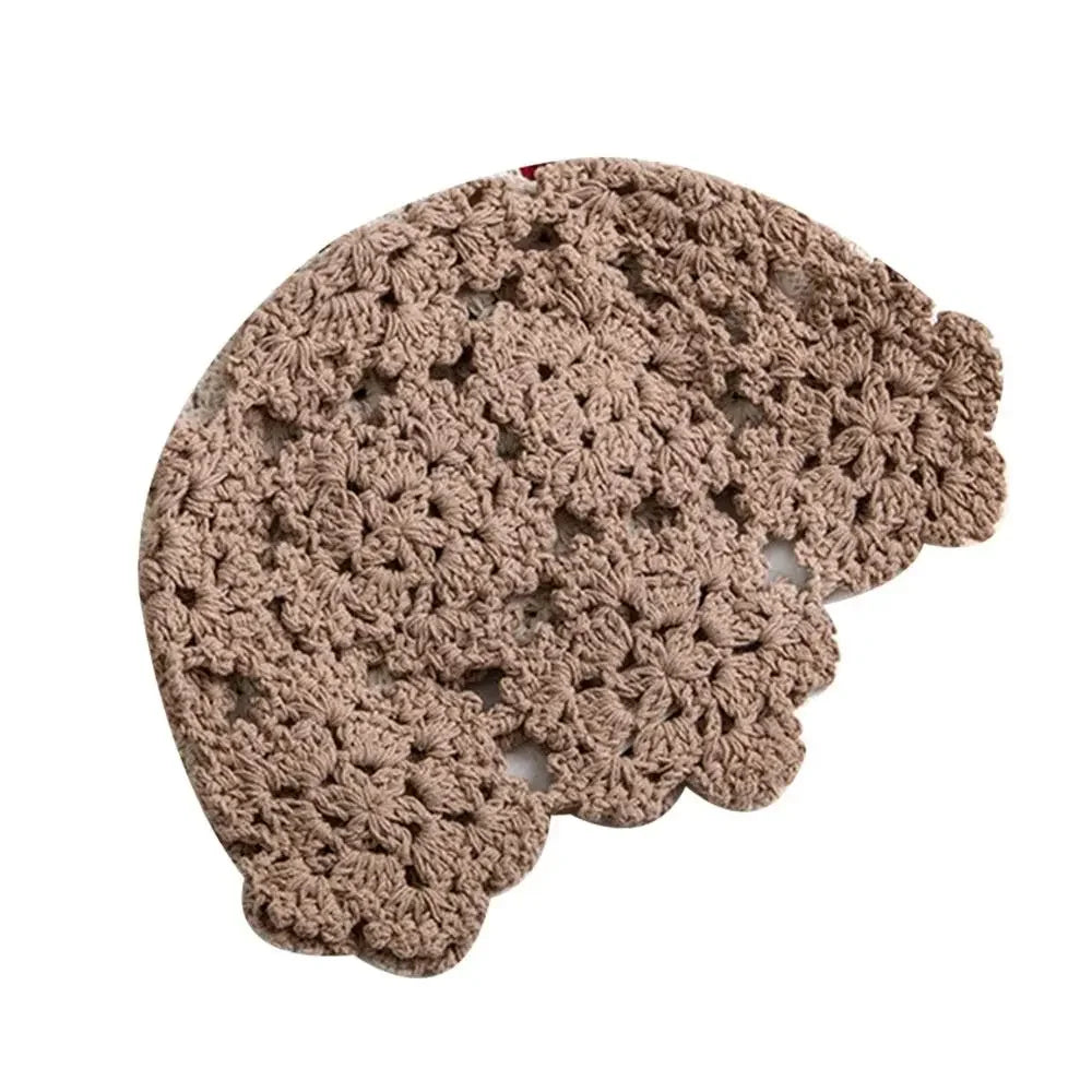 1 * Breathable Hollowed-Out Knitted Beret Floral Hat Casual Skullies Cap