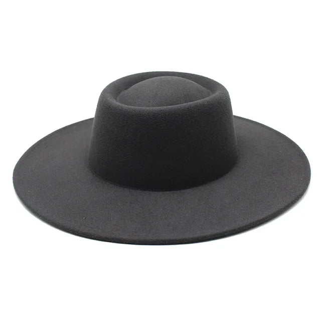 Classic British Style Big Wide Brim Fedora Hat For Women Winter Felt