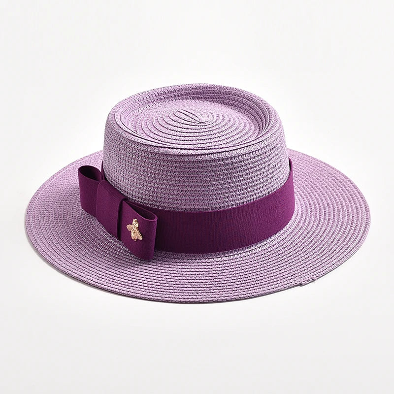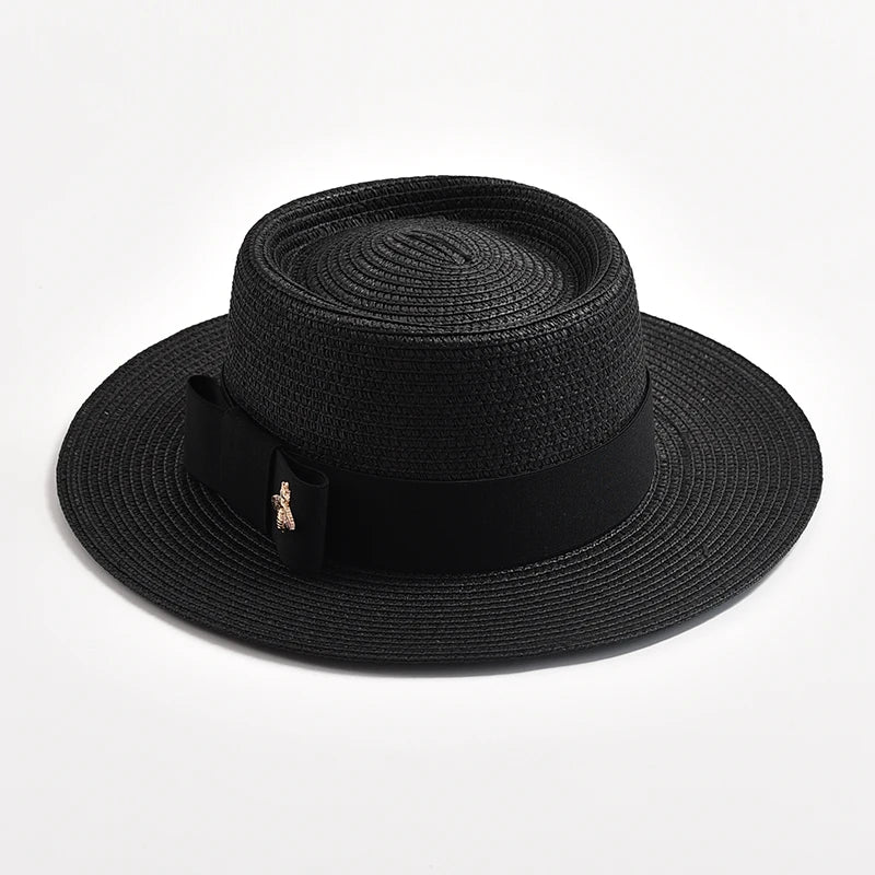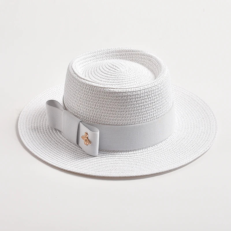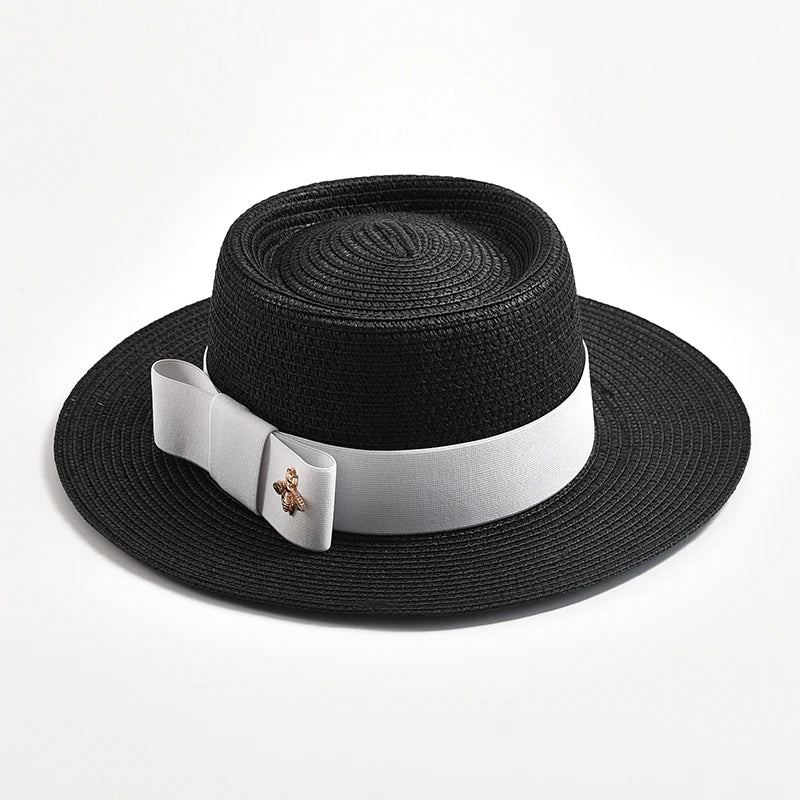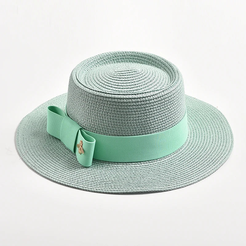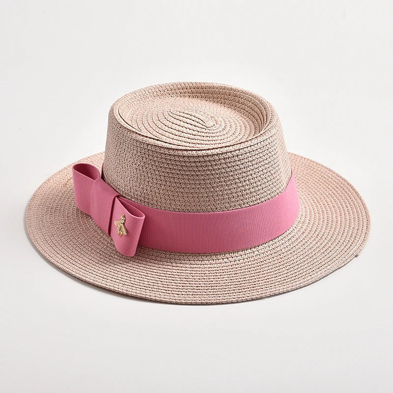 1 * Flat Top Bowknot Sun Hat with Textured Surface Spring Summer Straw Hat