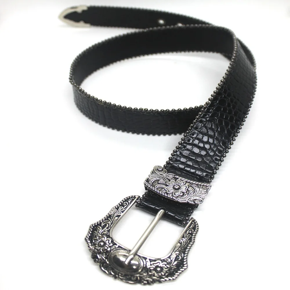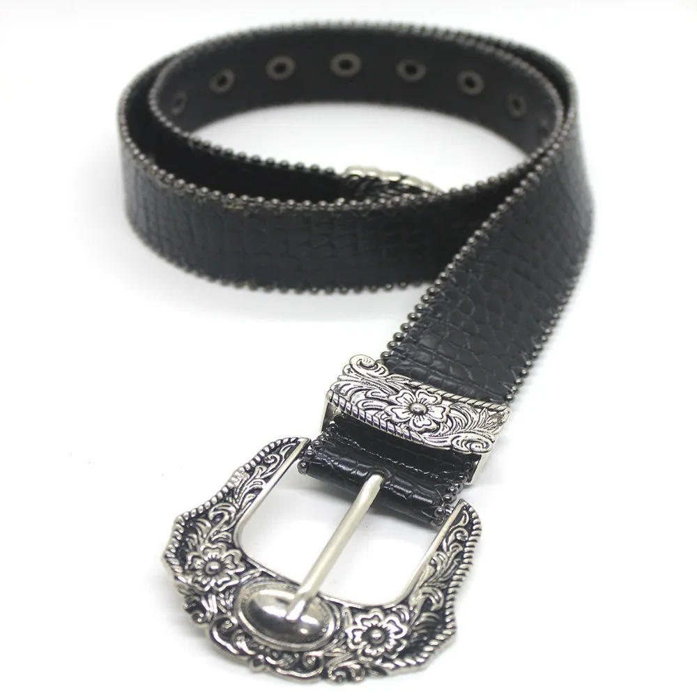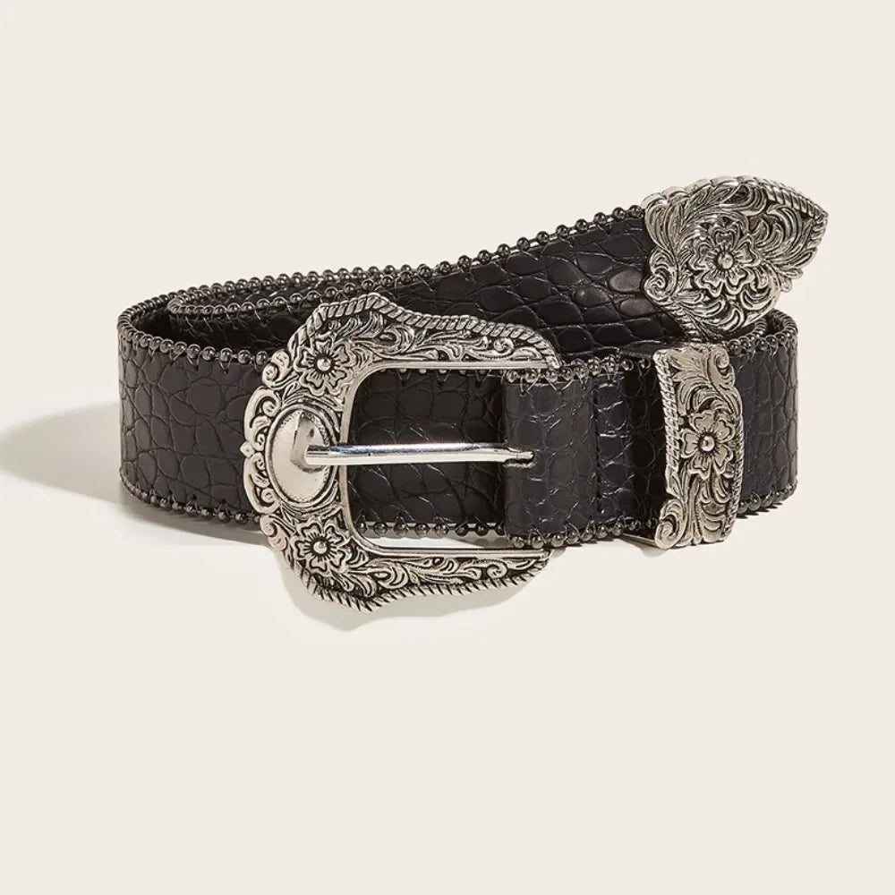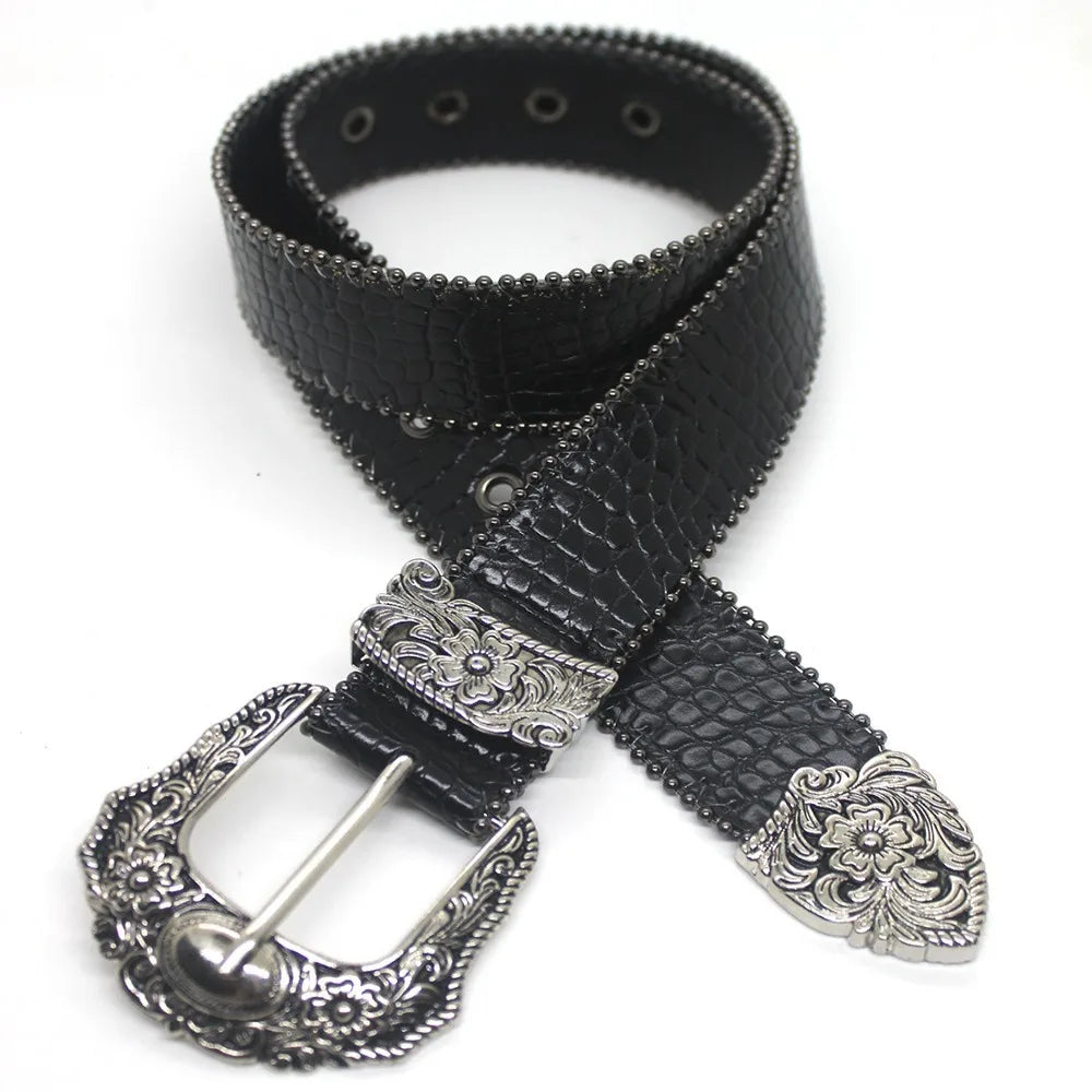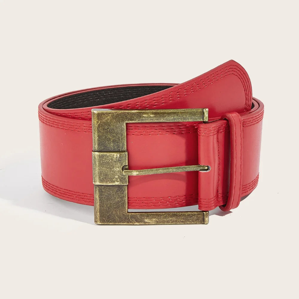 1 * Y2k Retro Leather Belt Luxury Pin Buckle Belt Metal Engraved Buckle