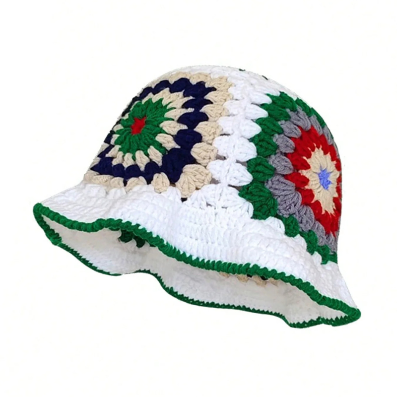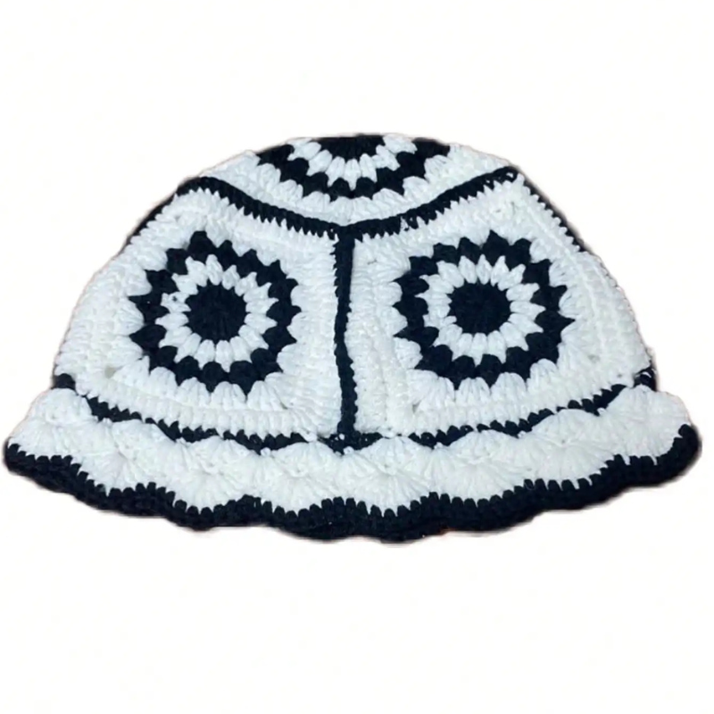 1 * Crochet Flower Bucket Hat Cotton Knitted Y2K Fashion Hollow-Out Beanie