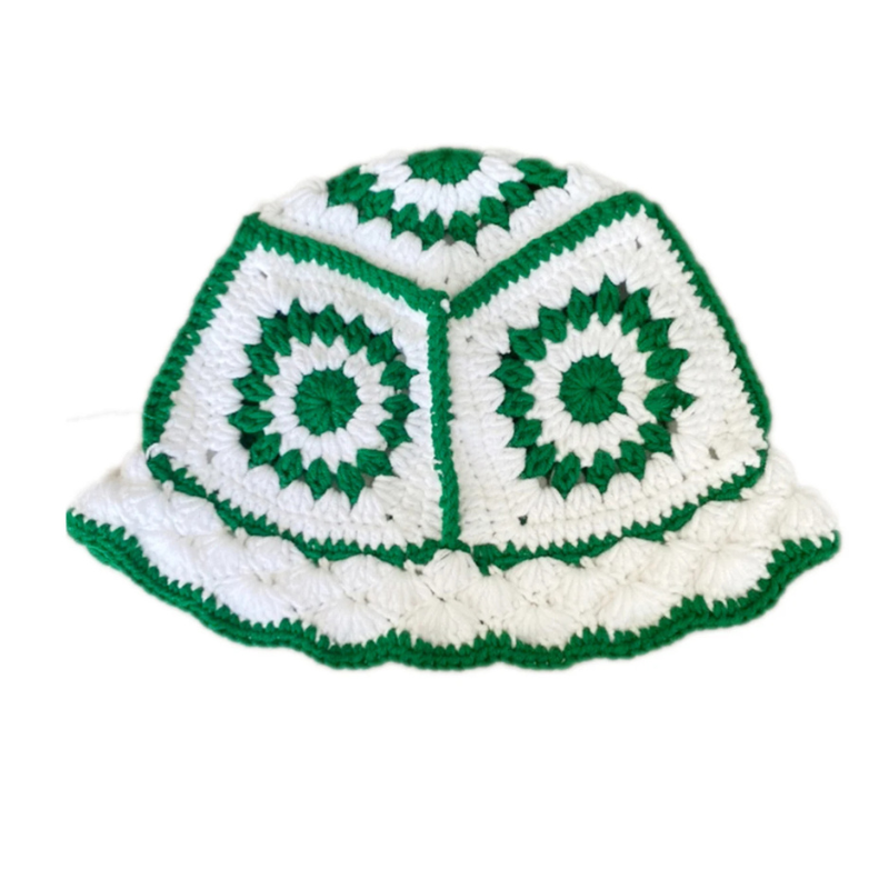 Crochet Flower Bucket Hat Cotton Knitted Y2K Fashion Hollow-Out Beanie