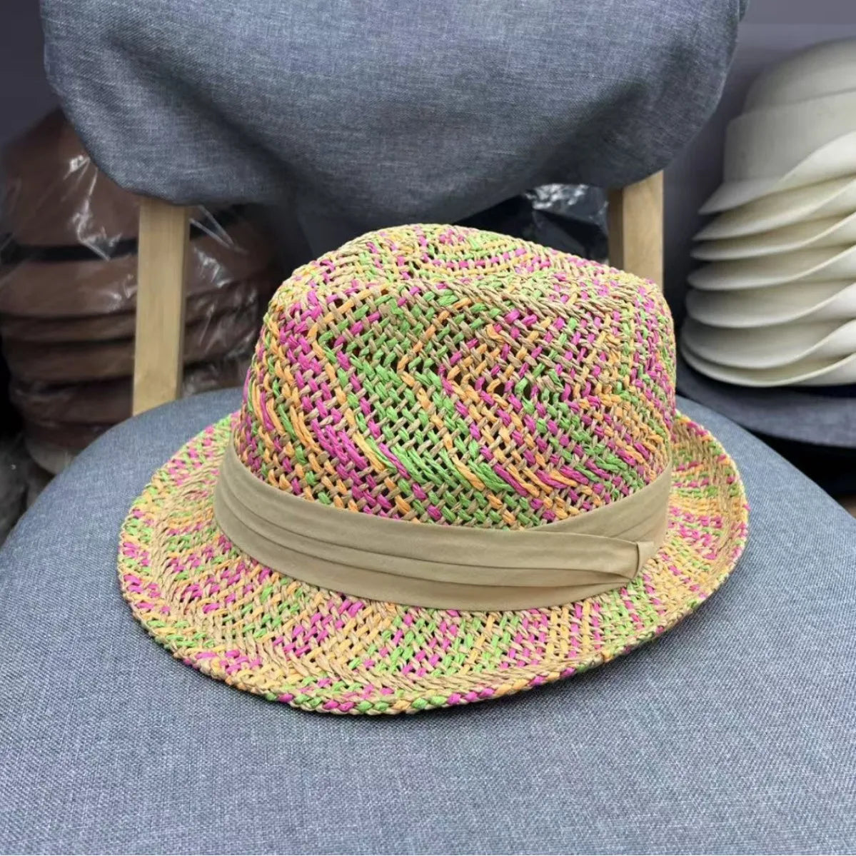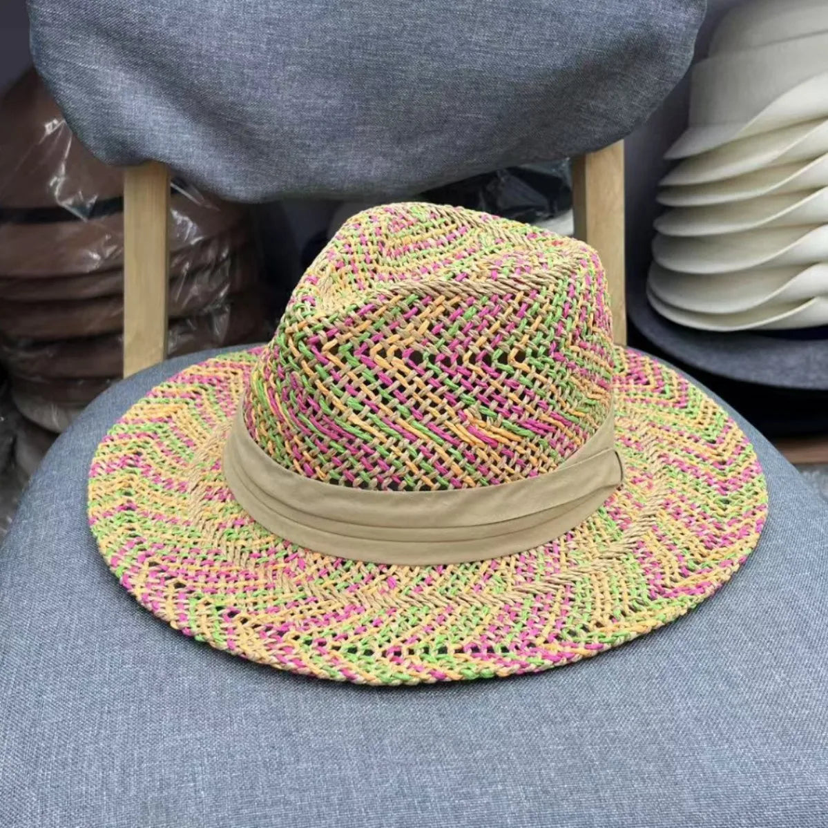 1 * Fashion Rainbow Straw Sun Summer Hat Panama Handmade Crochet Jazz Hat