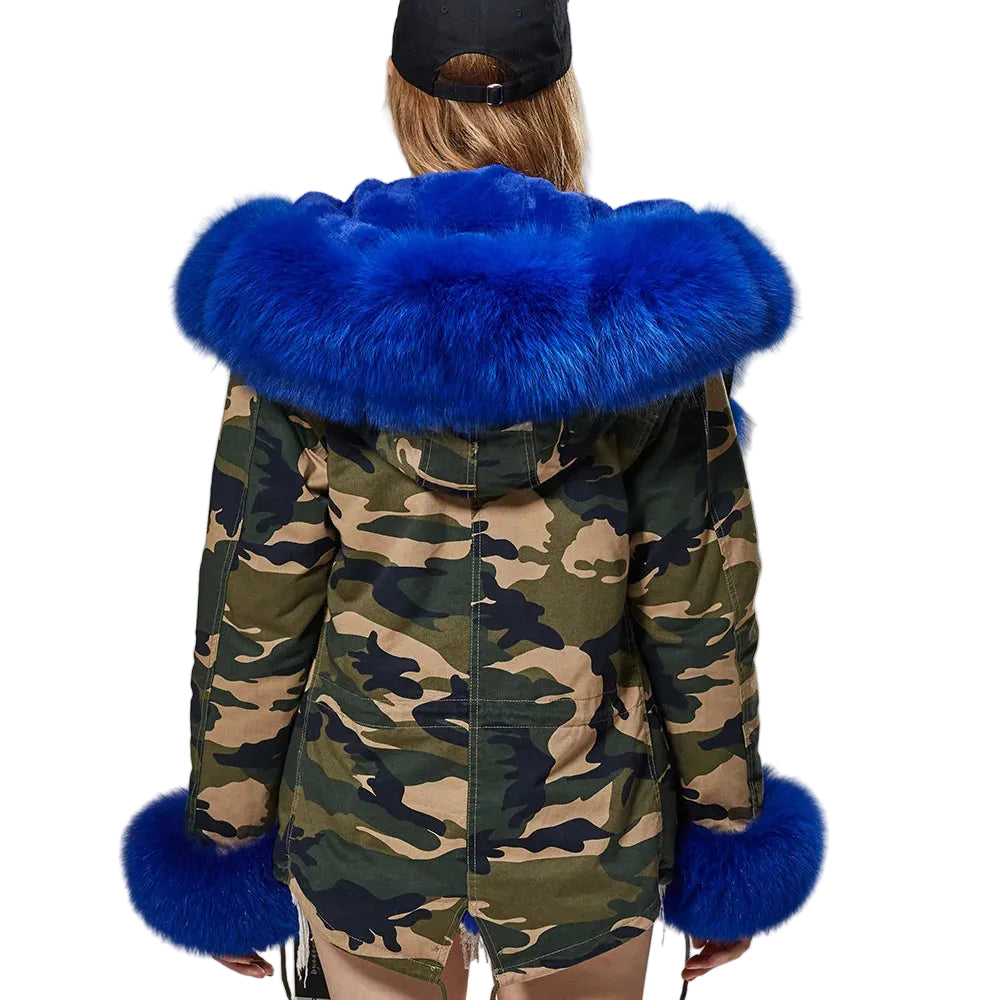 1 * Real Fox Raccoon Fur Collar Winter Parka Jacket with Inner Fur Lining