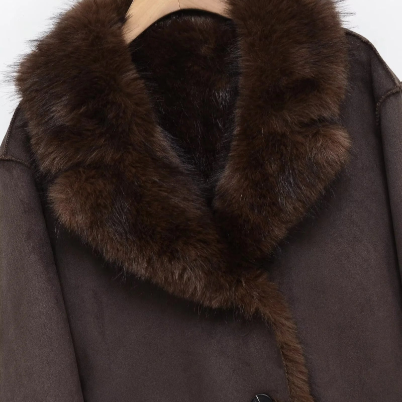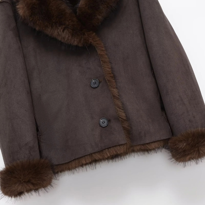 Reversible Faux Fur Effect Jacket Casual Lapel Button-Down Warm Coat