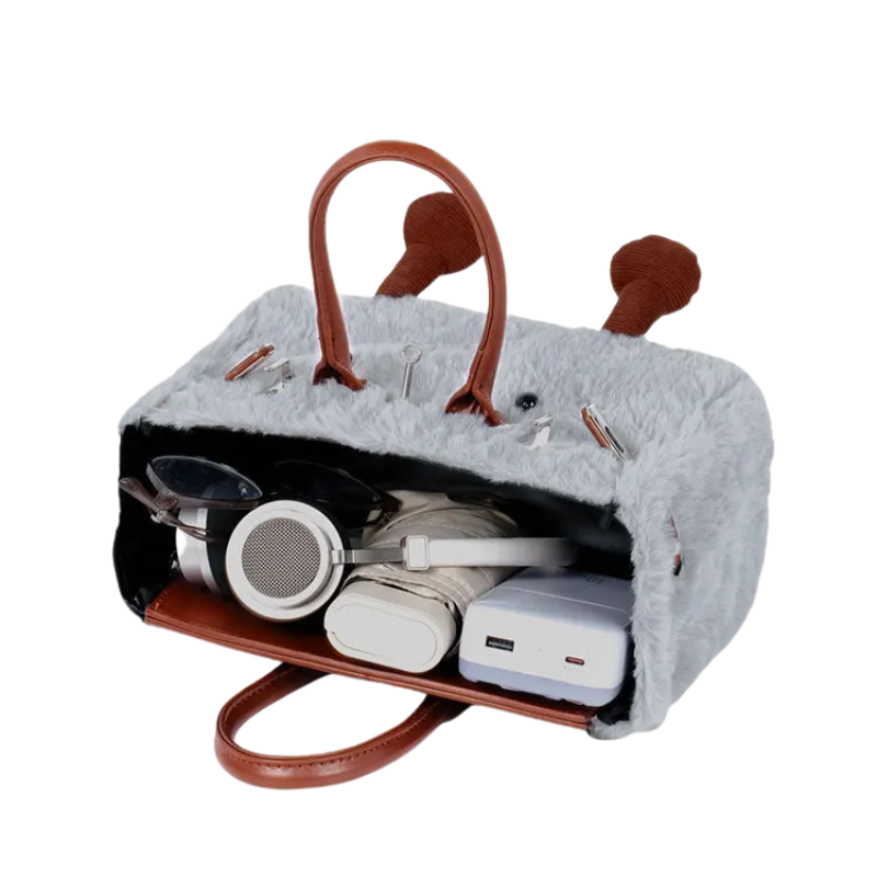 Cute Cartoon Smile Plush Crossbody Handbag Faux Fur Tote Shoulder Bag