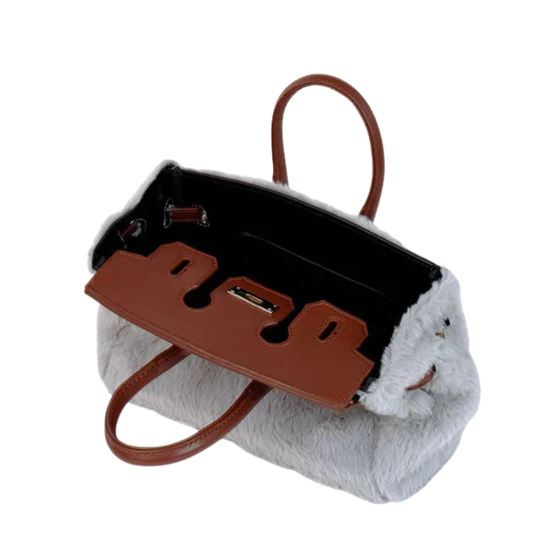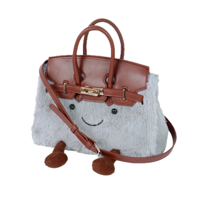 1 * Cute Cartoon Smile Plush Crossbody Handbag Faux Fur Tote Shoulder Bag