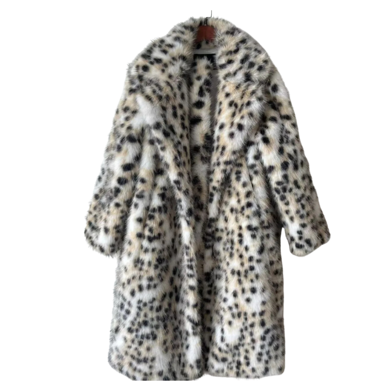 1 * Elegant Faux Mink Fur Coat Leopard Print Winter Jacket with Flip Collar