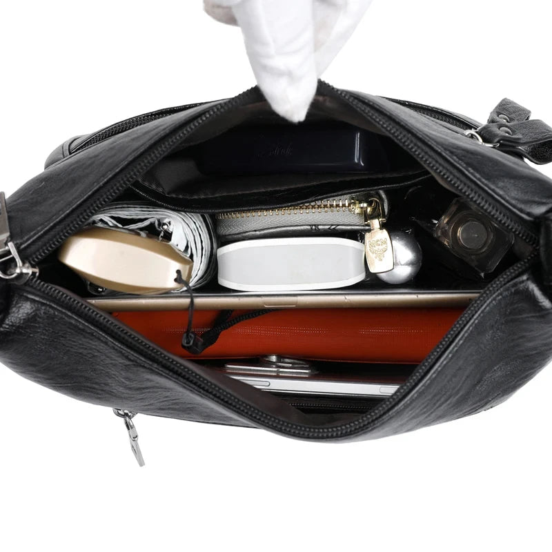 1 * Elegant Vintage Leather Crossbody Bag Multi-Pocket Shoulder Handbag