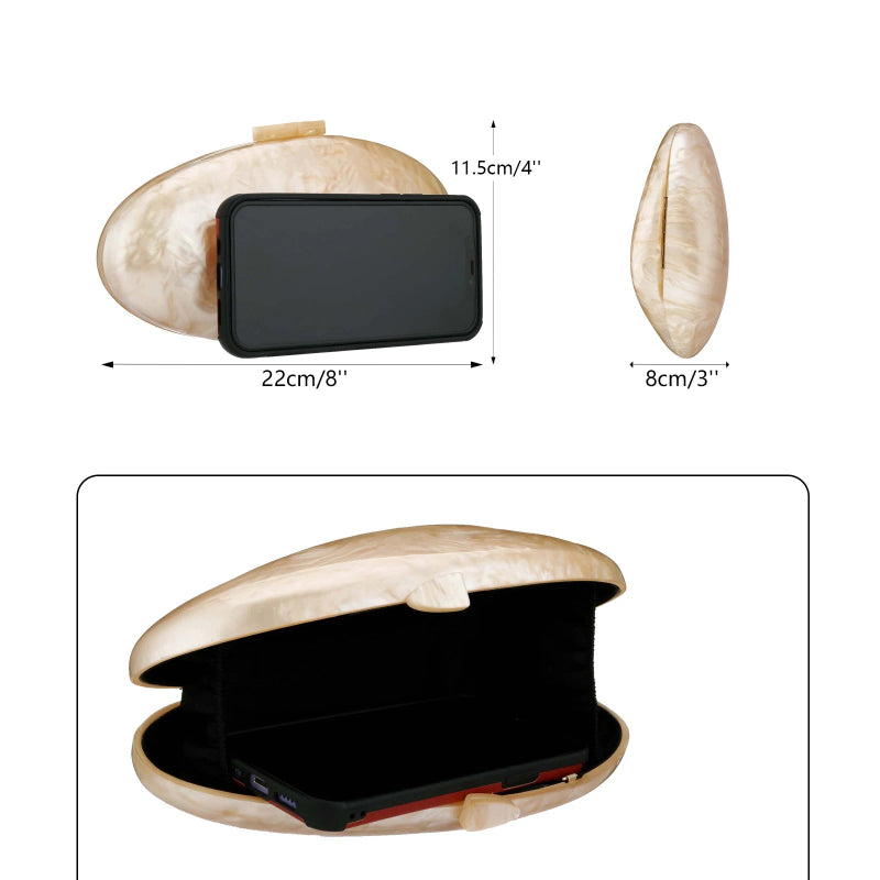Add a touch of elegance to your evening look with this Acrylic Shell Clutch Bag with Chain Elegant Shoulder Handbag Purse from Arimonz, designed for women who love luxury and statement accessories. Featuring a unique shell-inspired design and a sleek acrylic finish, this clutch instantly elevates any outfit.
