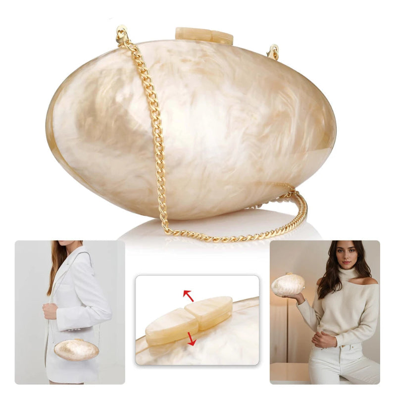 Acrylic Shell Clutch Bag with Chain Elegant Shoulder Handbag Purse