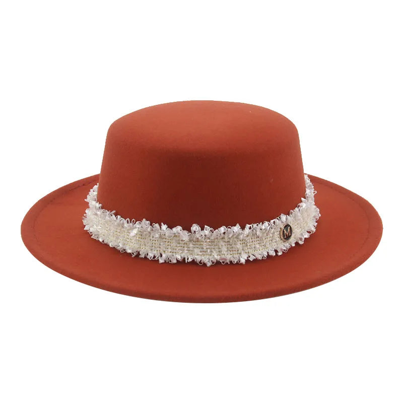 Elegant Solid Band Fashion Flat Dome Fedora Felt Hat Luxury Jazz Cap
