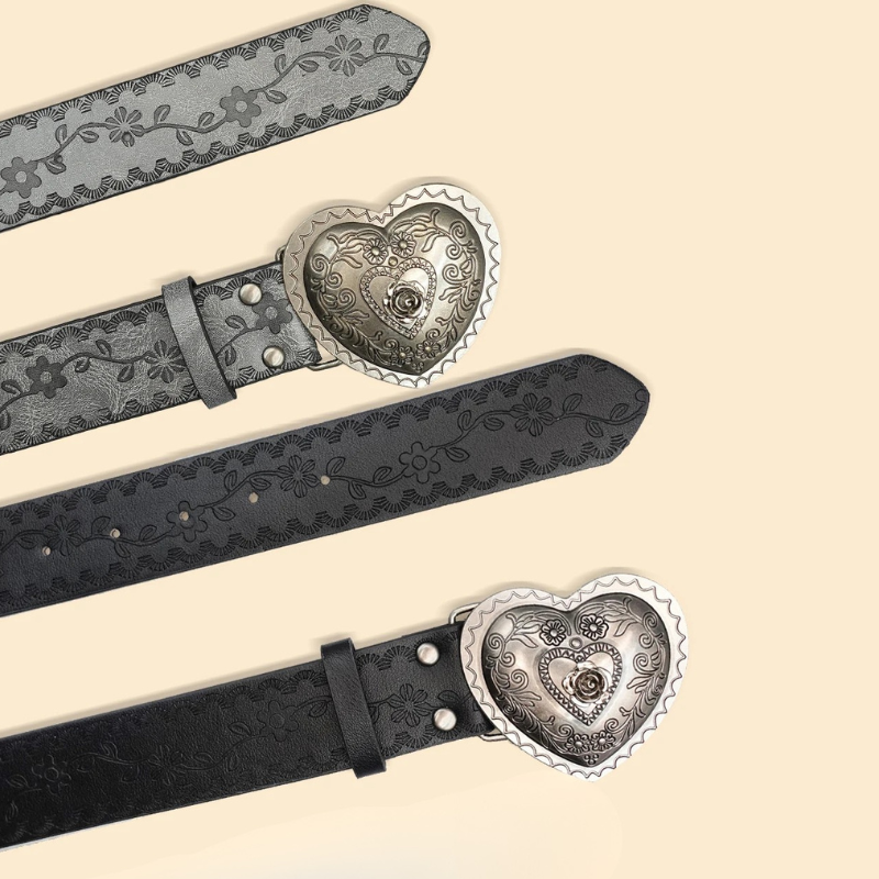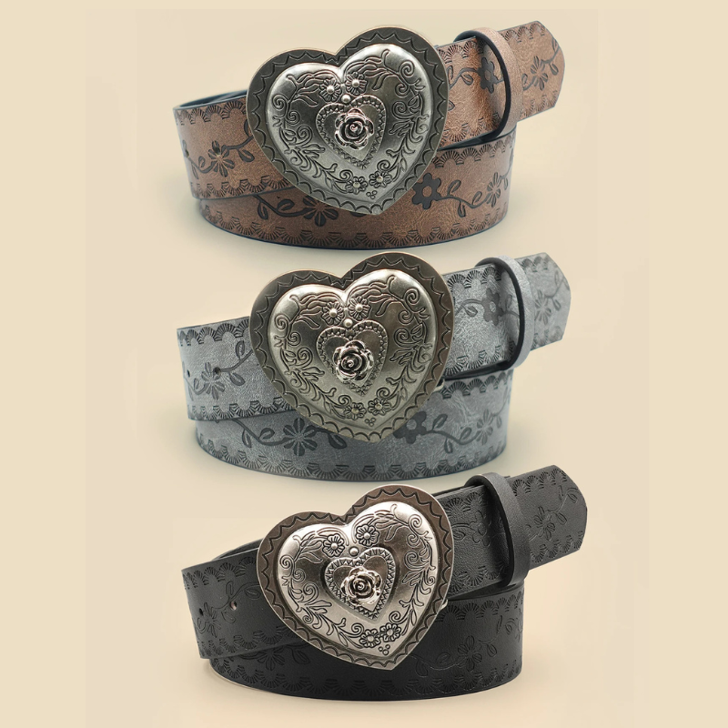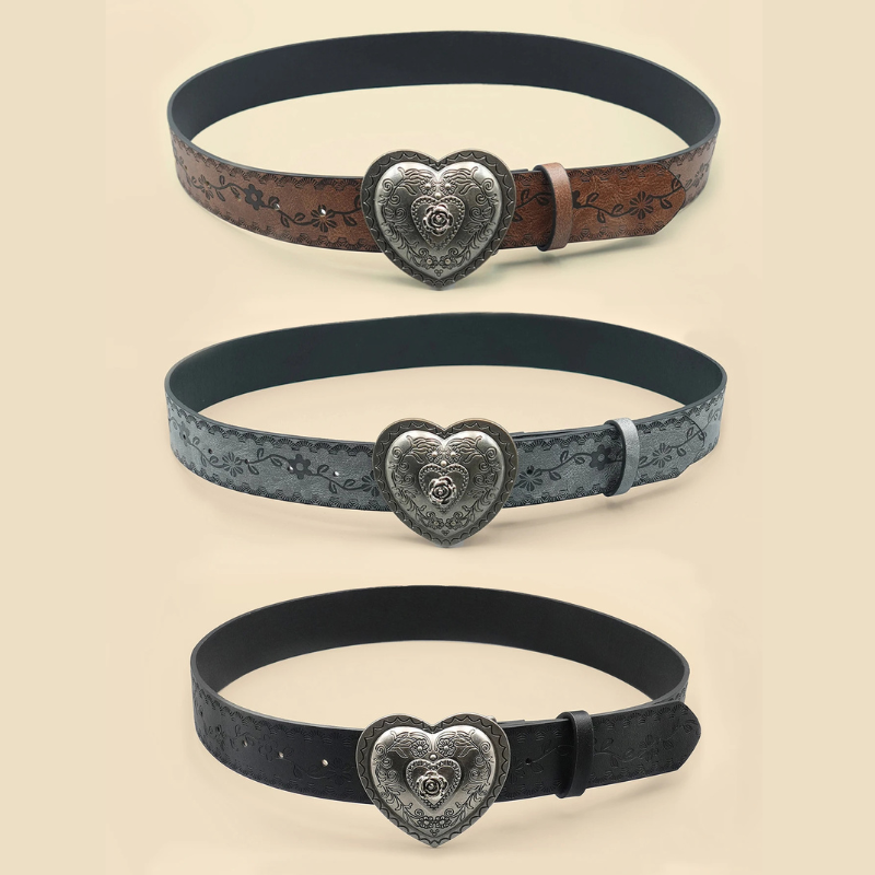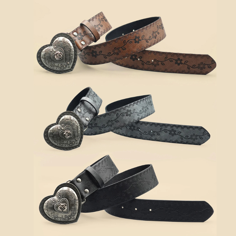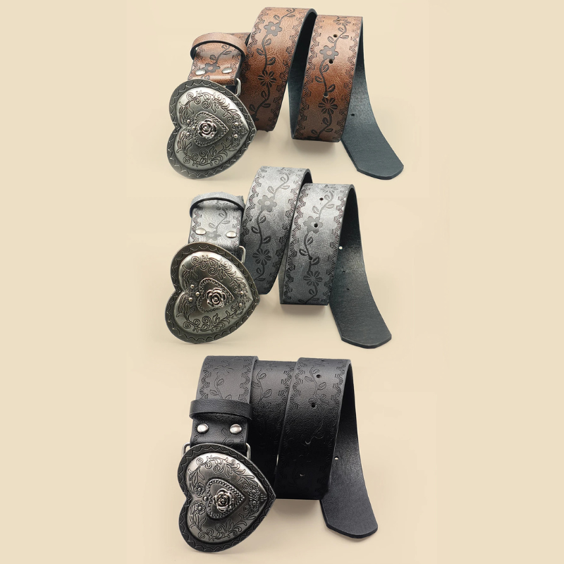 Add a romantic vintage touch to your outfit with this Retro Embossed Carved Leather Belt Heart Shaped Fashion Belt from Arimonz, featuring an elegant embossed carved design and a charming heart-shaped buckle. Designed to blend retro aesthetics with modern fashion, this belt is perfect for elevating dresses, jeans, suits, or shirts with effortless style.