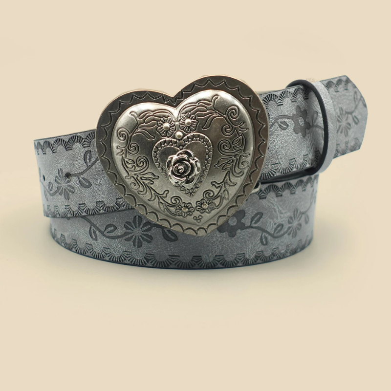 1 * Retro Embossed Carved Leather Belt Heart Shaped Fashion Belt