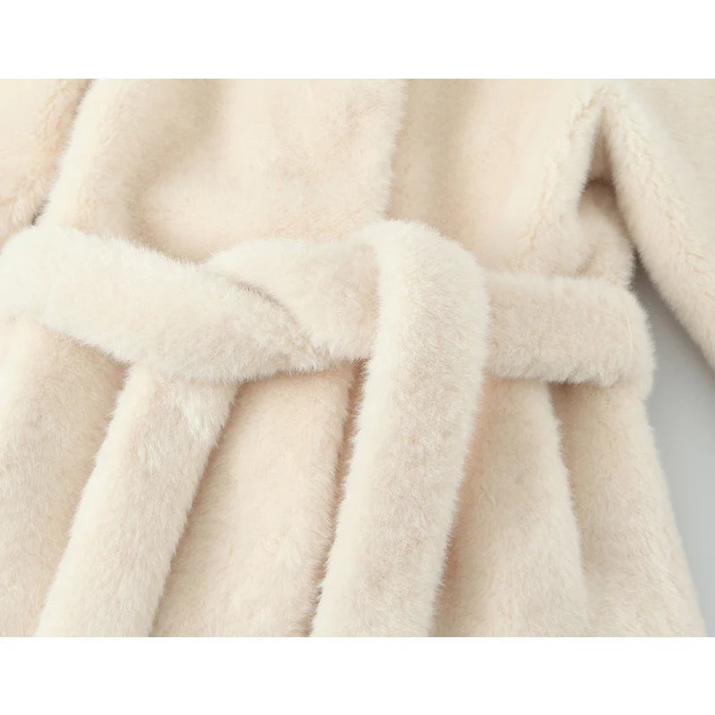 Luxury Belted Faux Fur Coat Thick Warm Plush Winter Jacket Coat