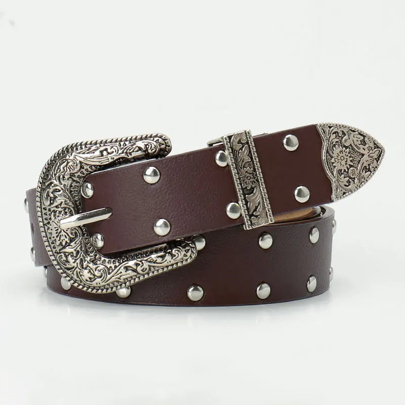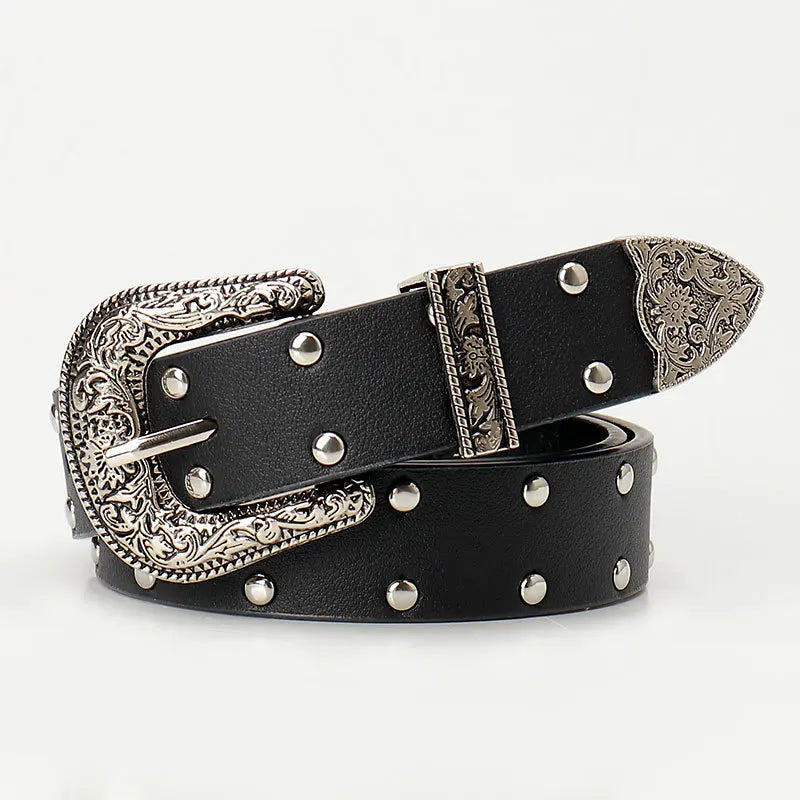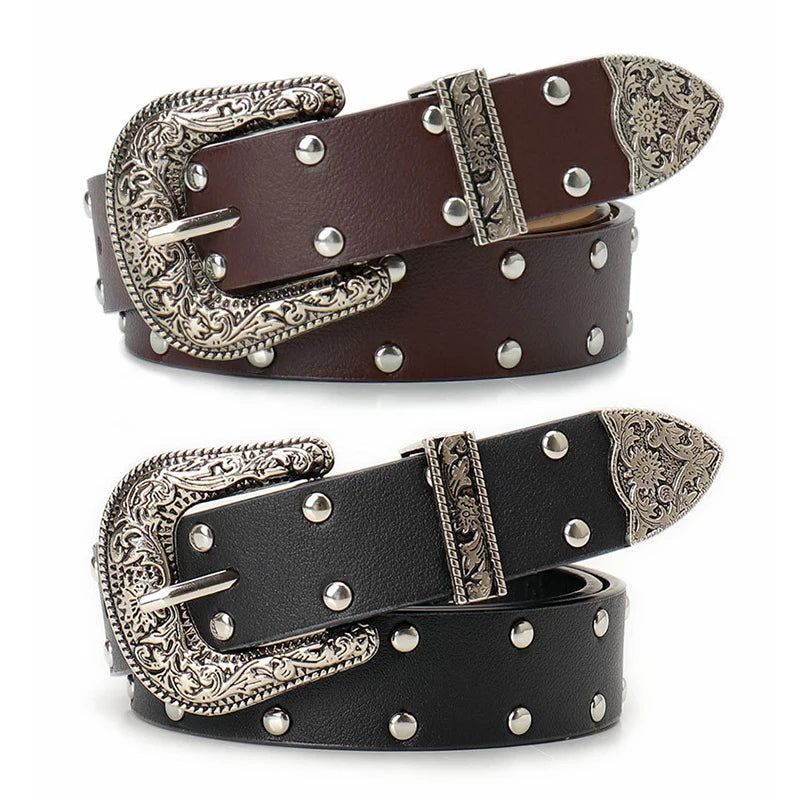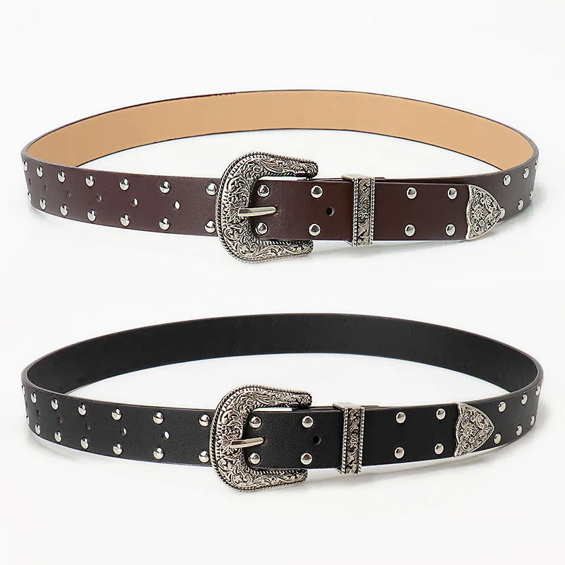 1 * Rivet Punk Leather Belt Gothic Retro Y2K Waistband Pin Buckle Belt