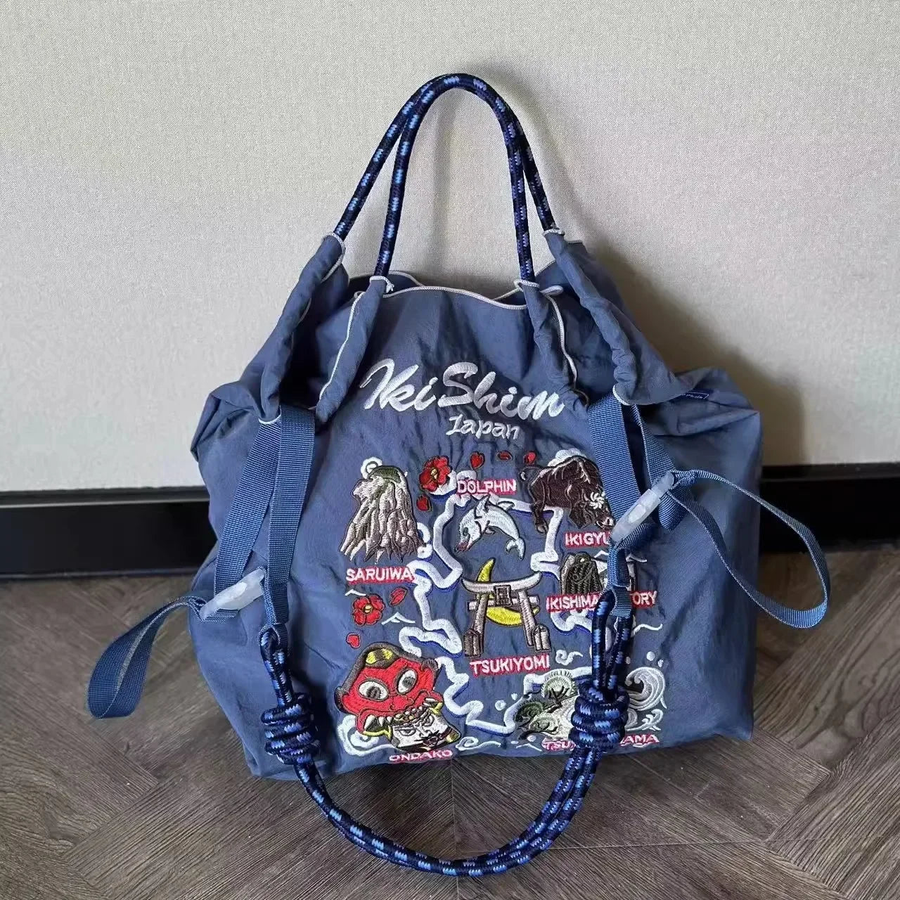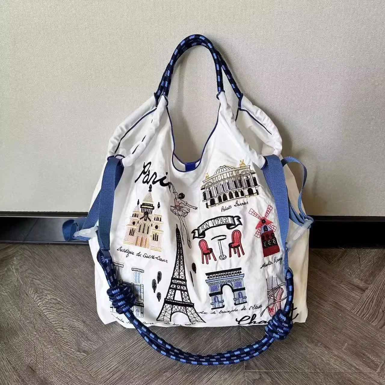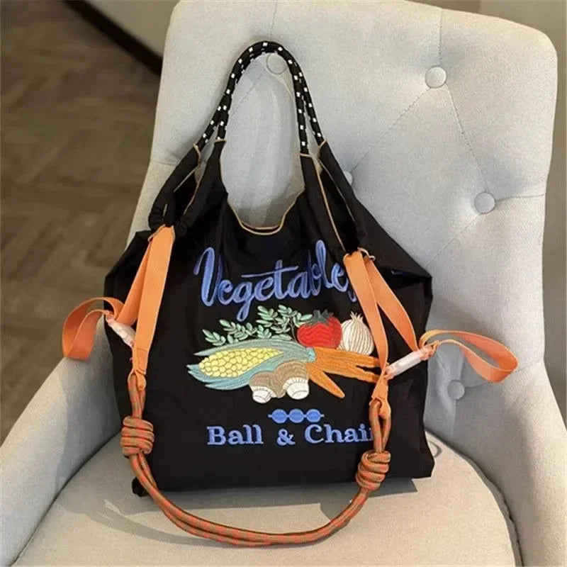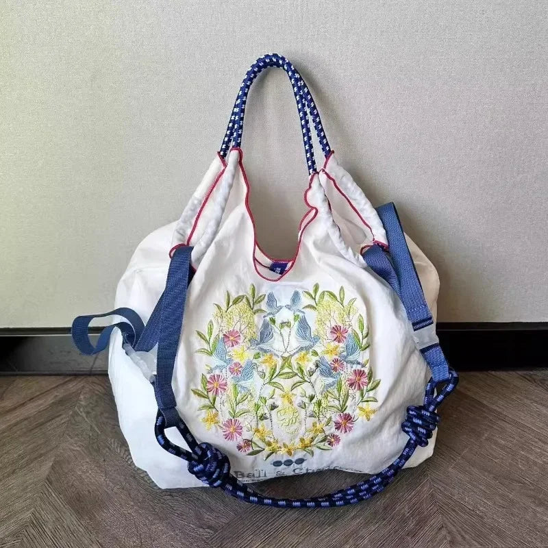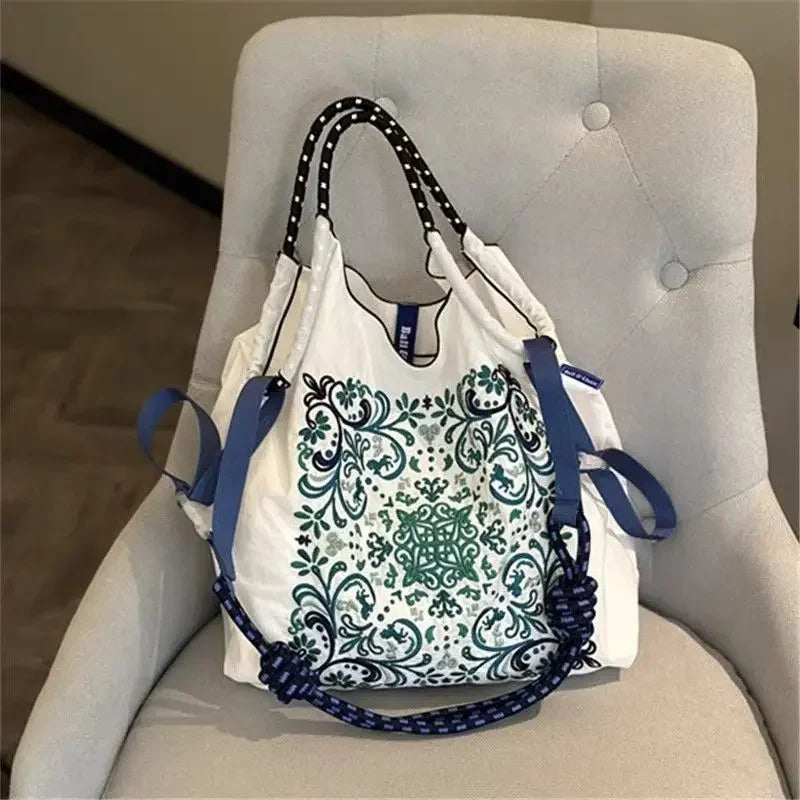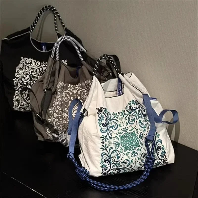 Embroidered Nylon Shoulder Bag Large Capacity Shopping Handbag