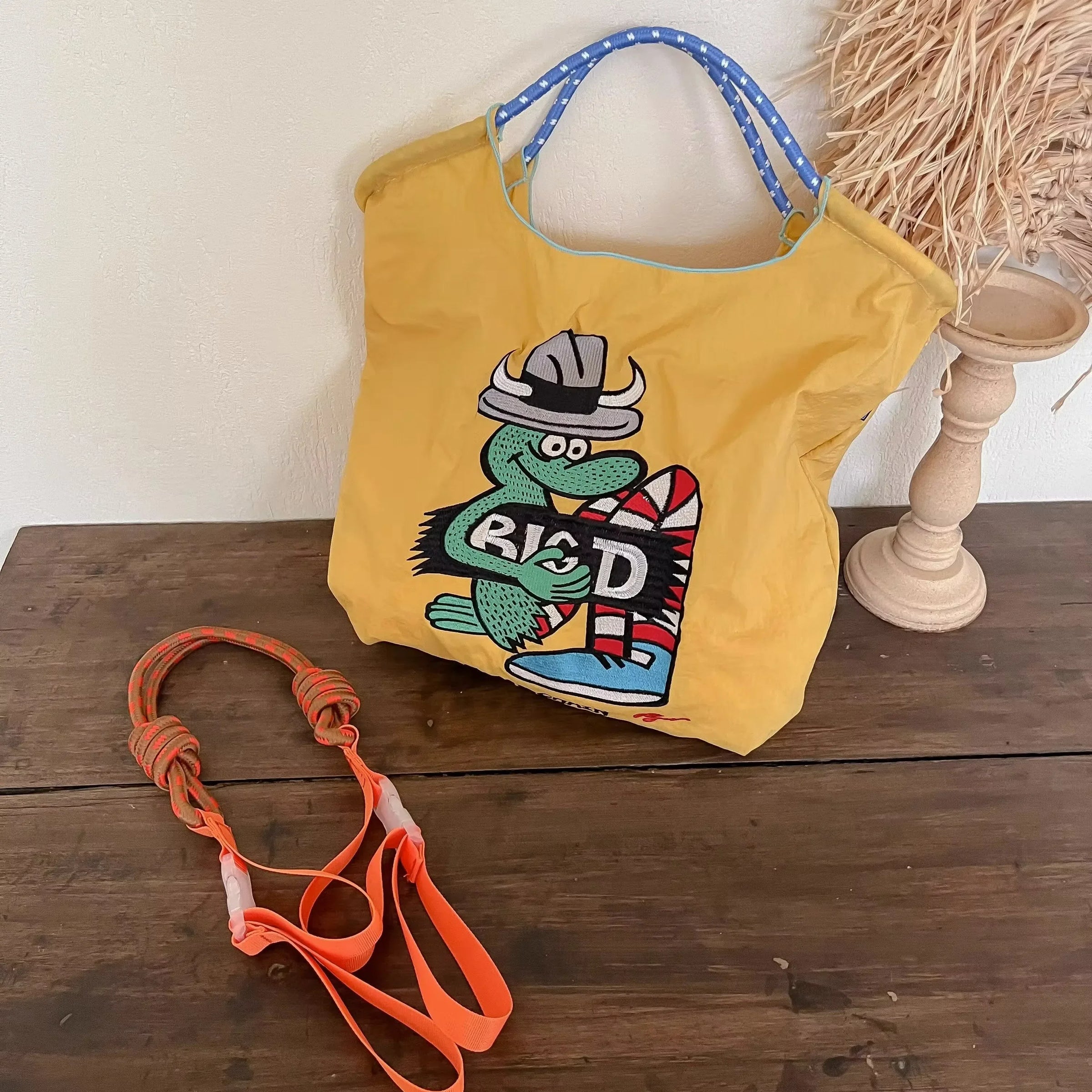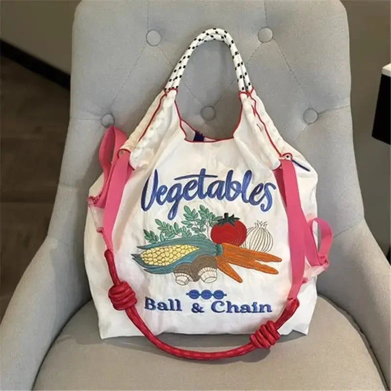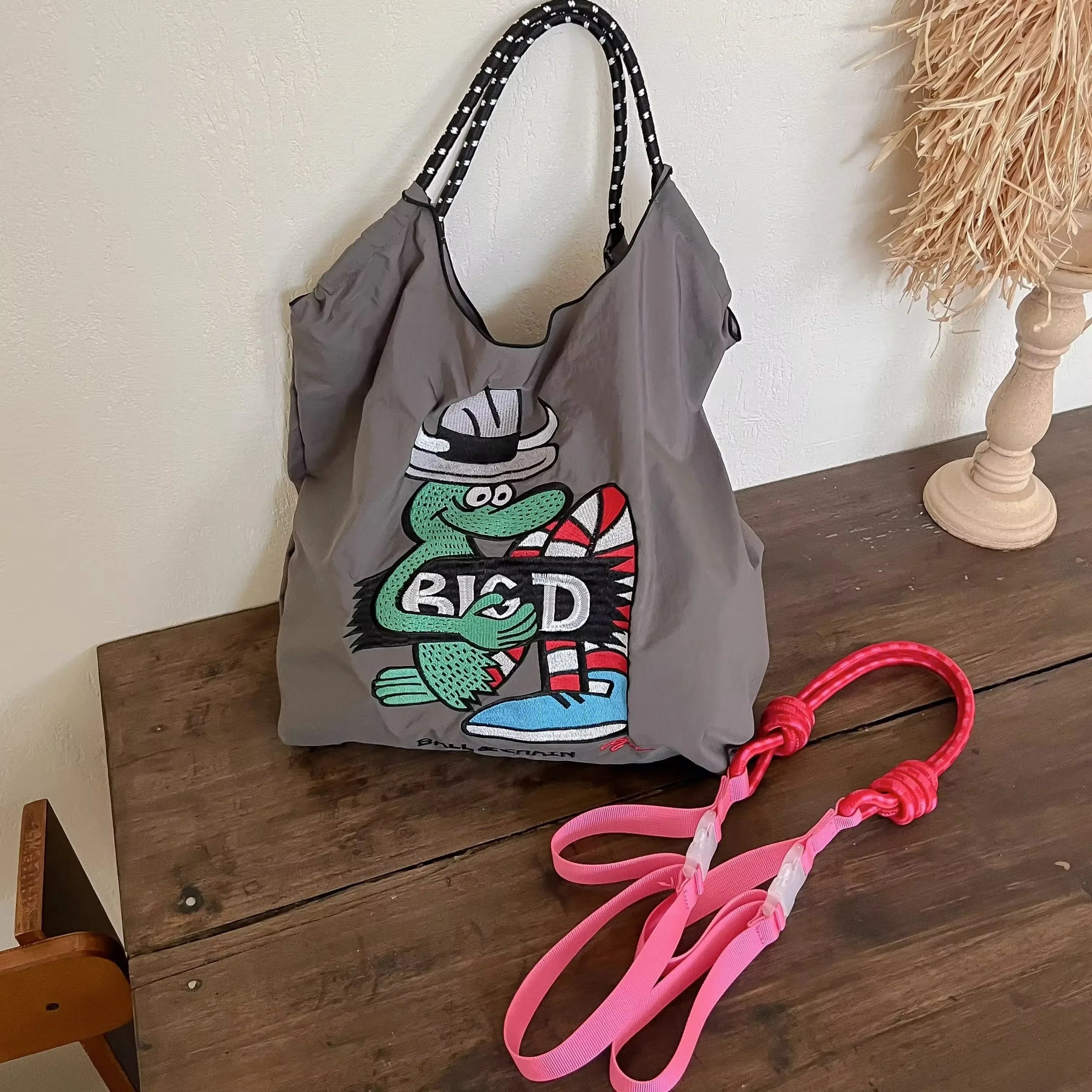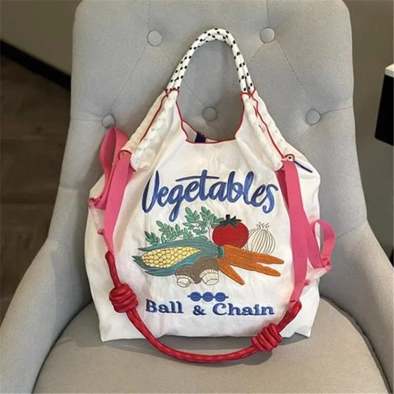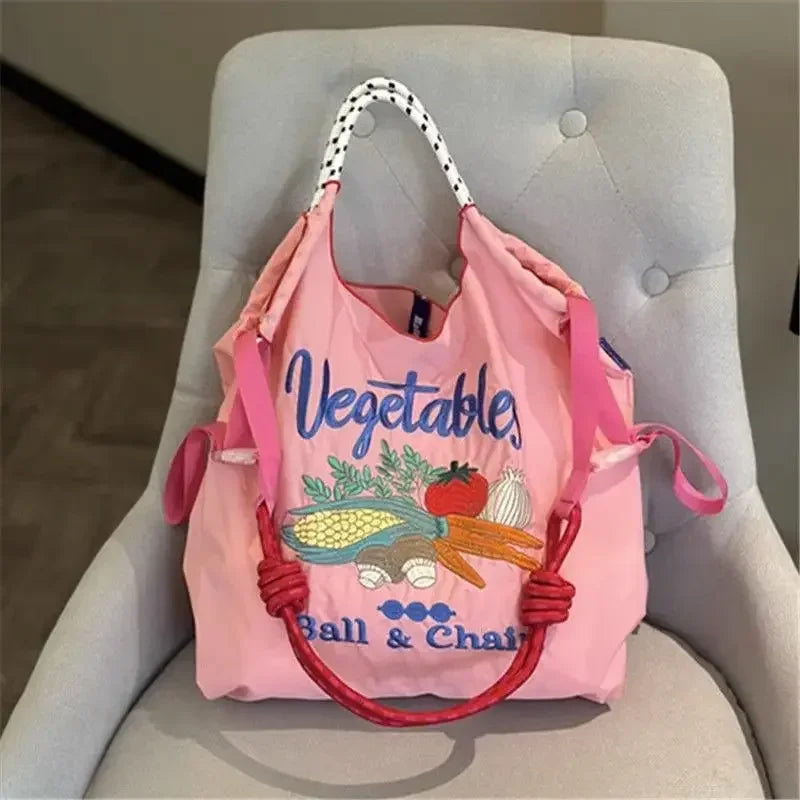 Embroidered Nylon Shoulder Bag Large Capacity Shopping Handbag