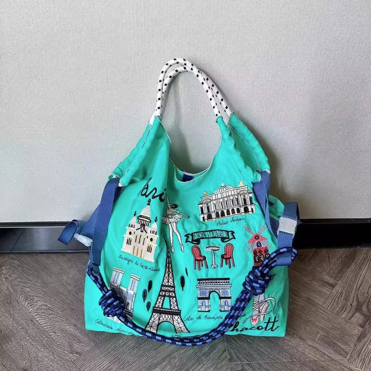 1 * Embroidered Nylon Shoulder Bag Large Capacity Shopping Handbag