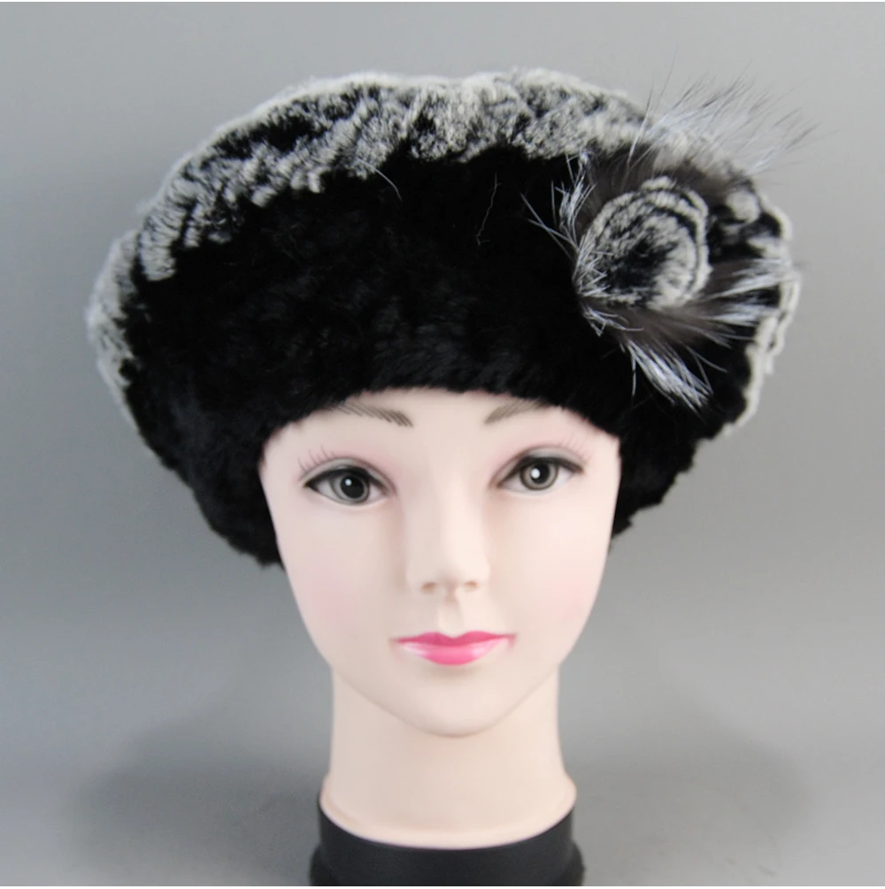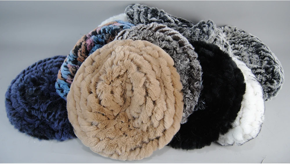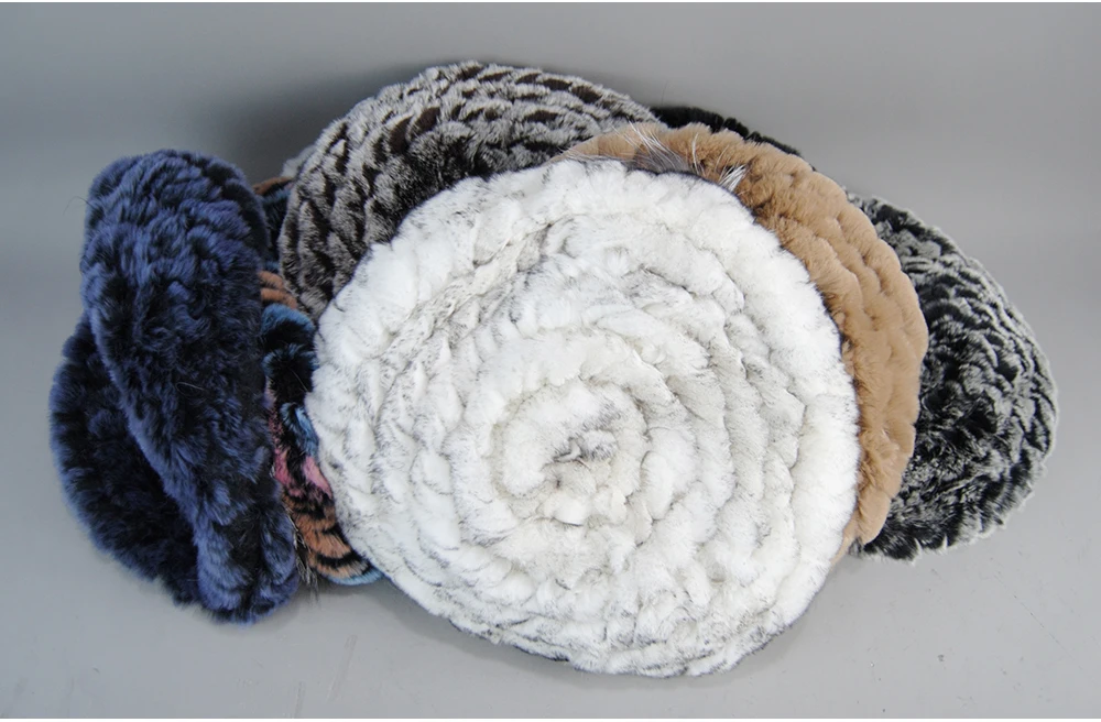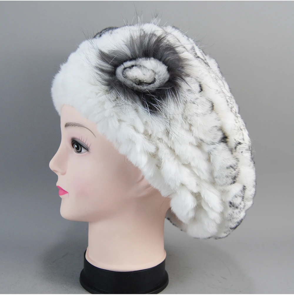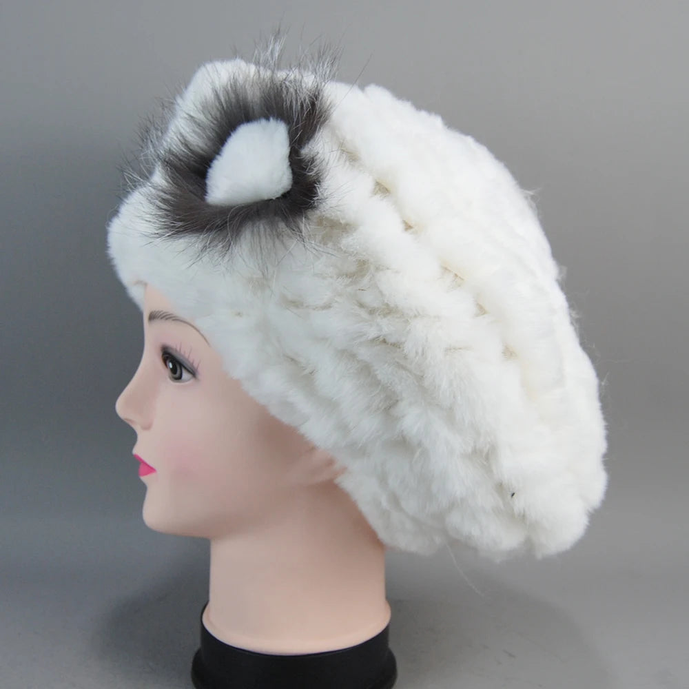 Real Rex Rabbit Fur Beanie Natural Knitted Fur Beret Warm Winter Hat