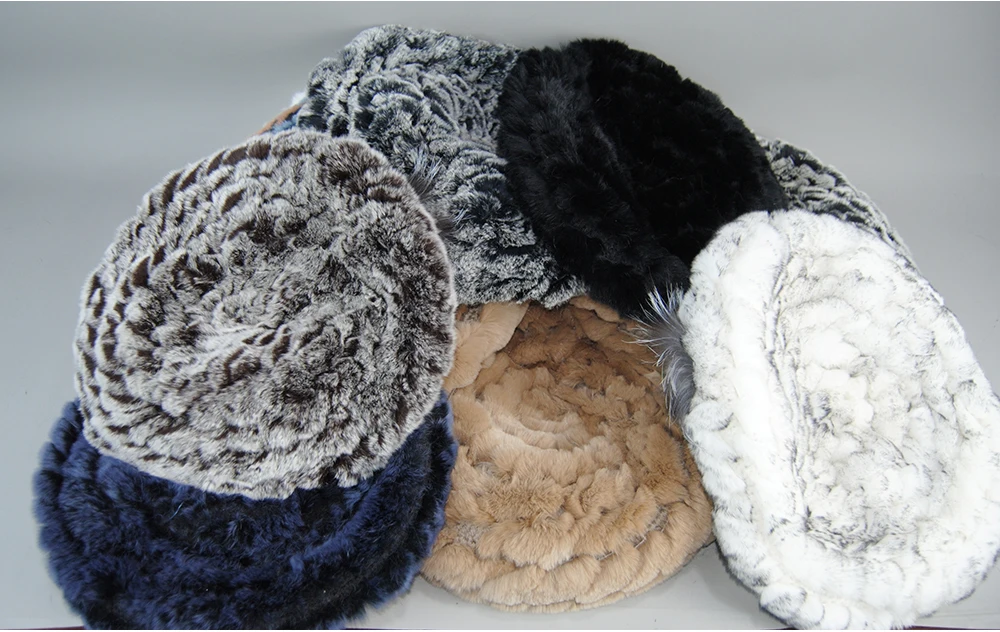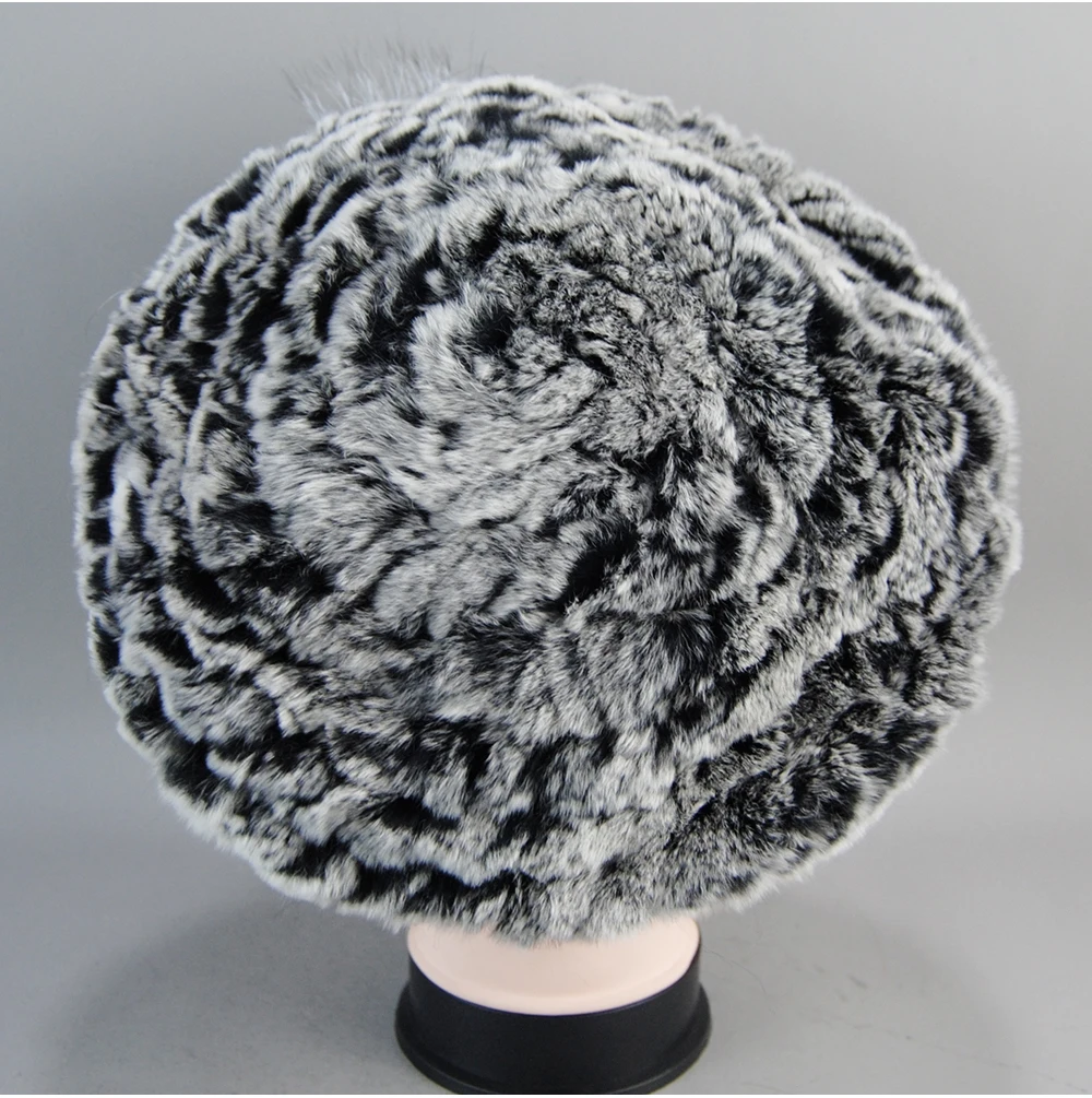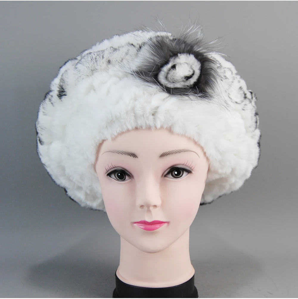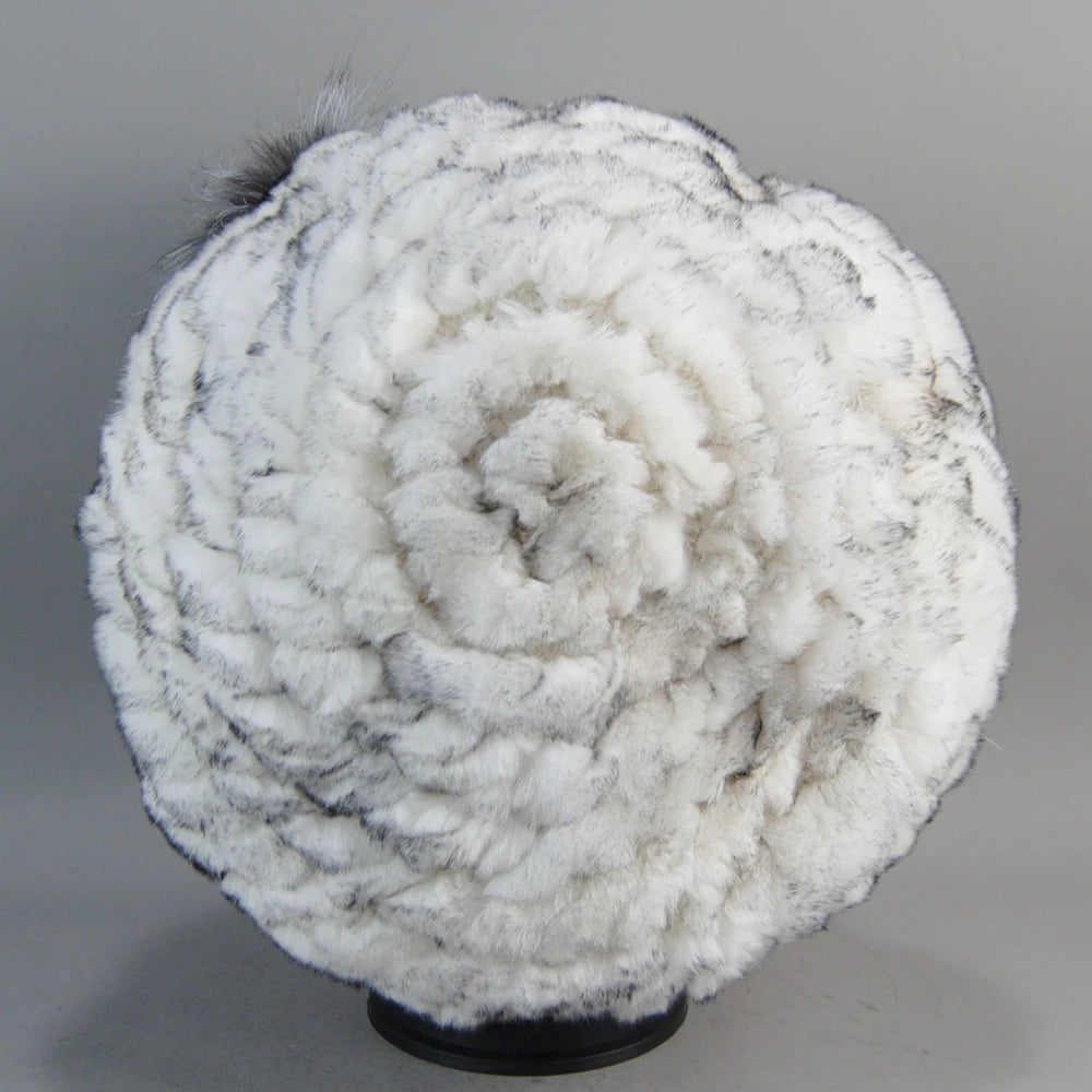 Real Rex Rabbit Fur Beanie Natural Knitted Fur Beret Warm Winter Hat