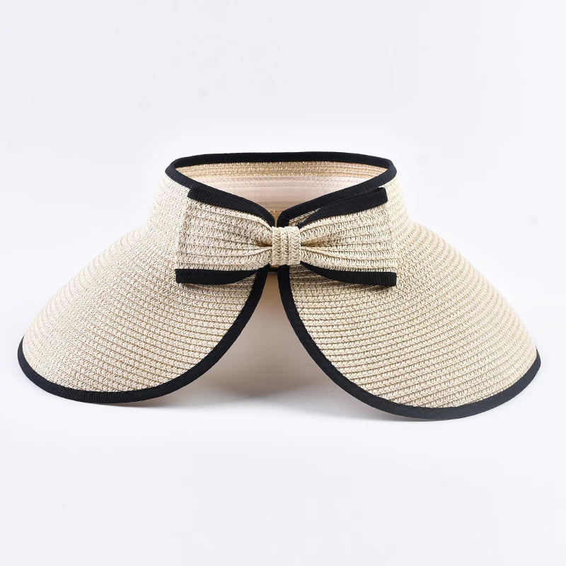 Stay cool, stylish, and sun-safe with the Summer Empty Top Straw Hat for Women from Arimonz. This foldable wide-brim hat is designed for effortless elegance, featuring a charming bowknot accent and an open-top design—perfect for high ponytails or buns on hot days.