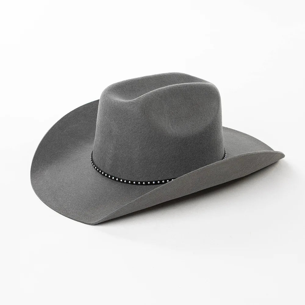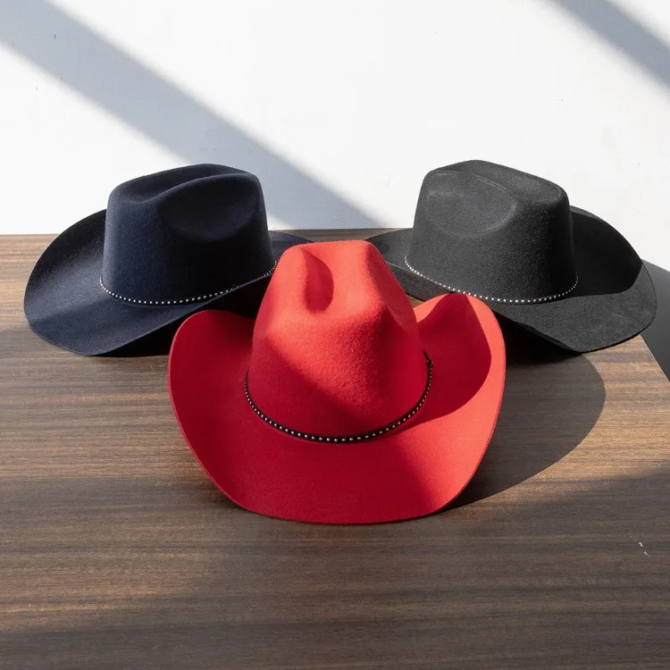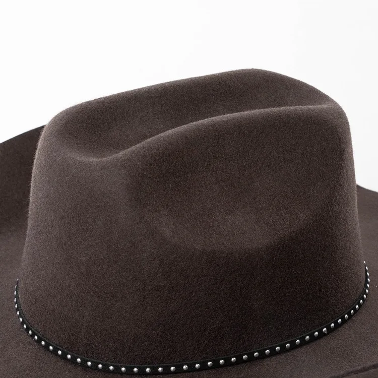Wool Fedora Felt Cowboy with Studded Belt Wide Brim Curved Edge Hat