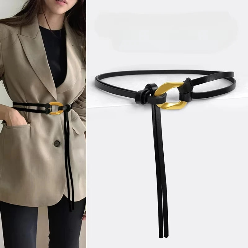 Elegant Fashion Small Leather Waistband Belt Cowhide Knot Waist Belt