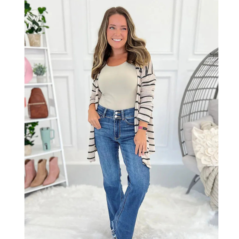 The fit is amazing and flattering on the waist. The straight-leg cut is great with boots or sneakers.