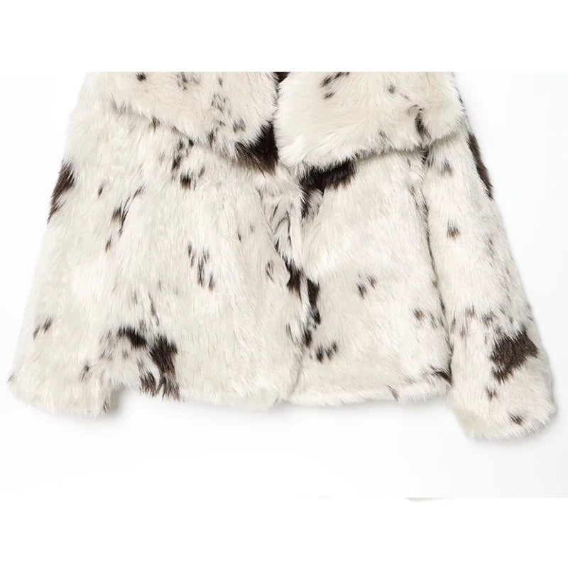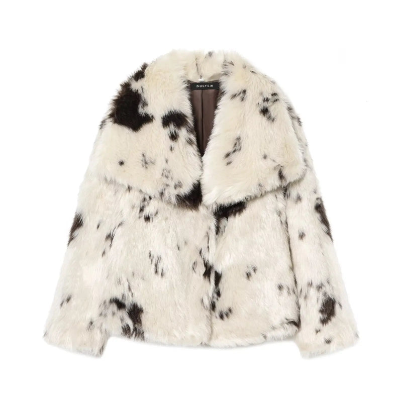 Elegant Warm Fluffy Lapel Faux Fur Coat Loose Long Sleeve Lapel Jacket