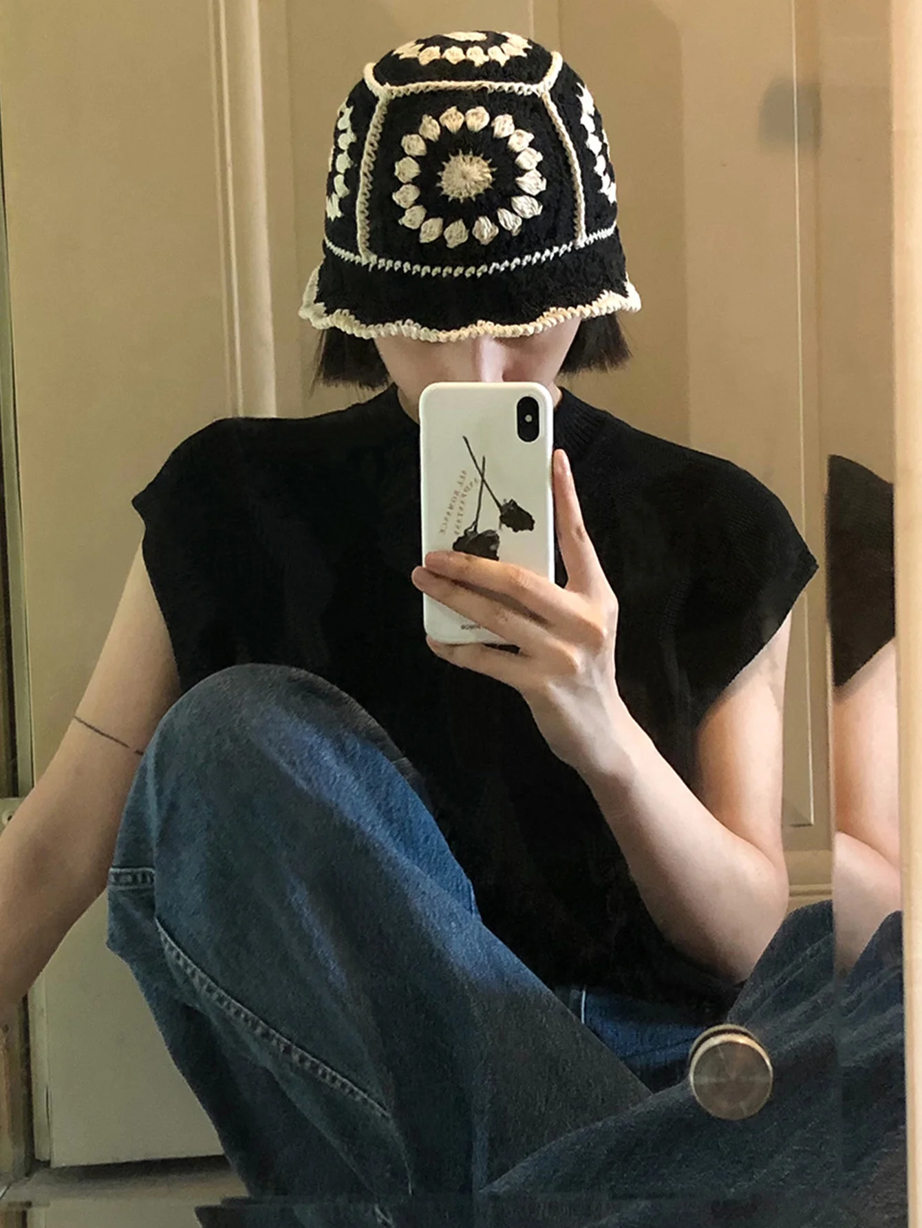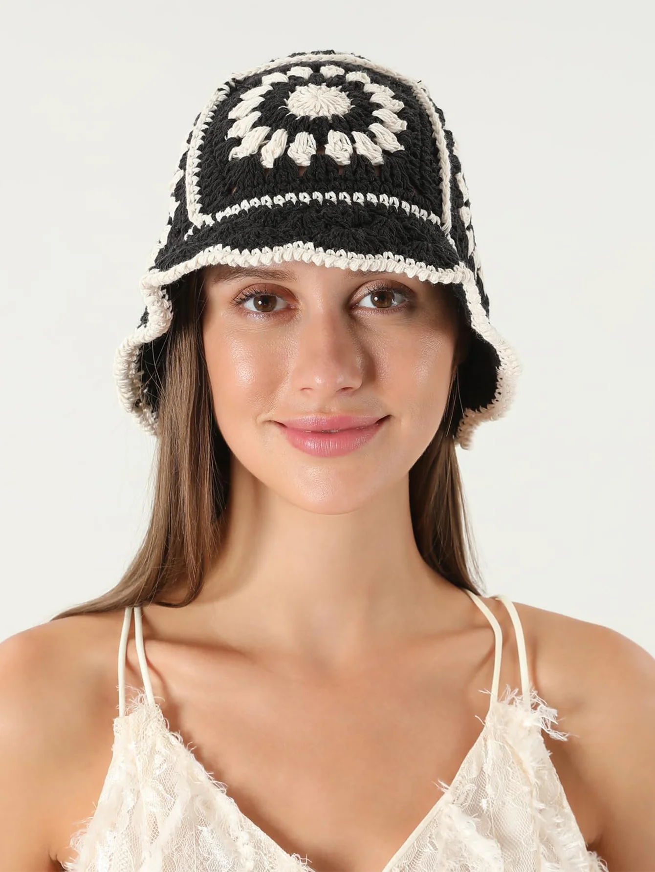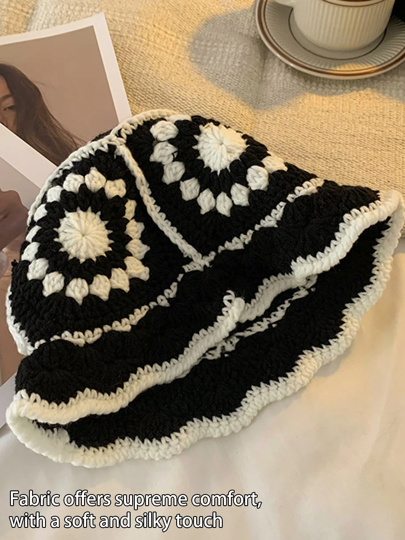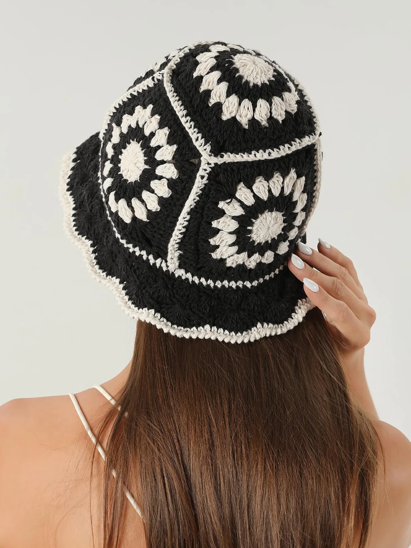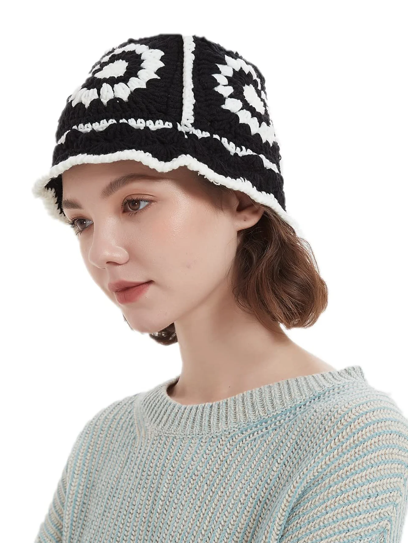 Crochet Flower Bucket Hat Cotton Knitted Y2K Fashion Hollow-Out Beanie