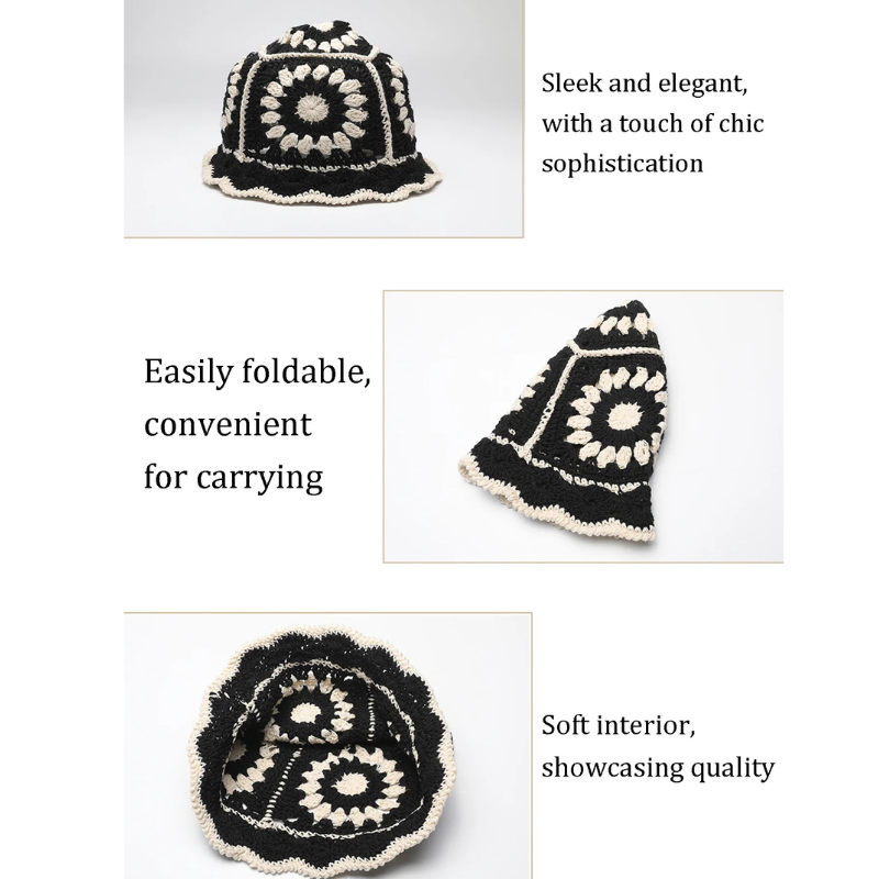 Add a touch of retro charm and street-style flair to your wardrobe with this Crochet Flower Bucket Hat Cotton Knitted Y2K Fashion Hollow-Out Beanie from Arimonz. Designed with soft cotton yarn, this knitted hat features a unique hollow-out pattern and cute crochet flower accents, giving it a perfect blend of Y2K fashion and modern hip-hop street vibes. Lightweight, breathable, and stylish, ideal for all-season wear.