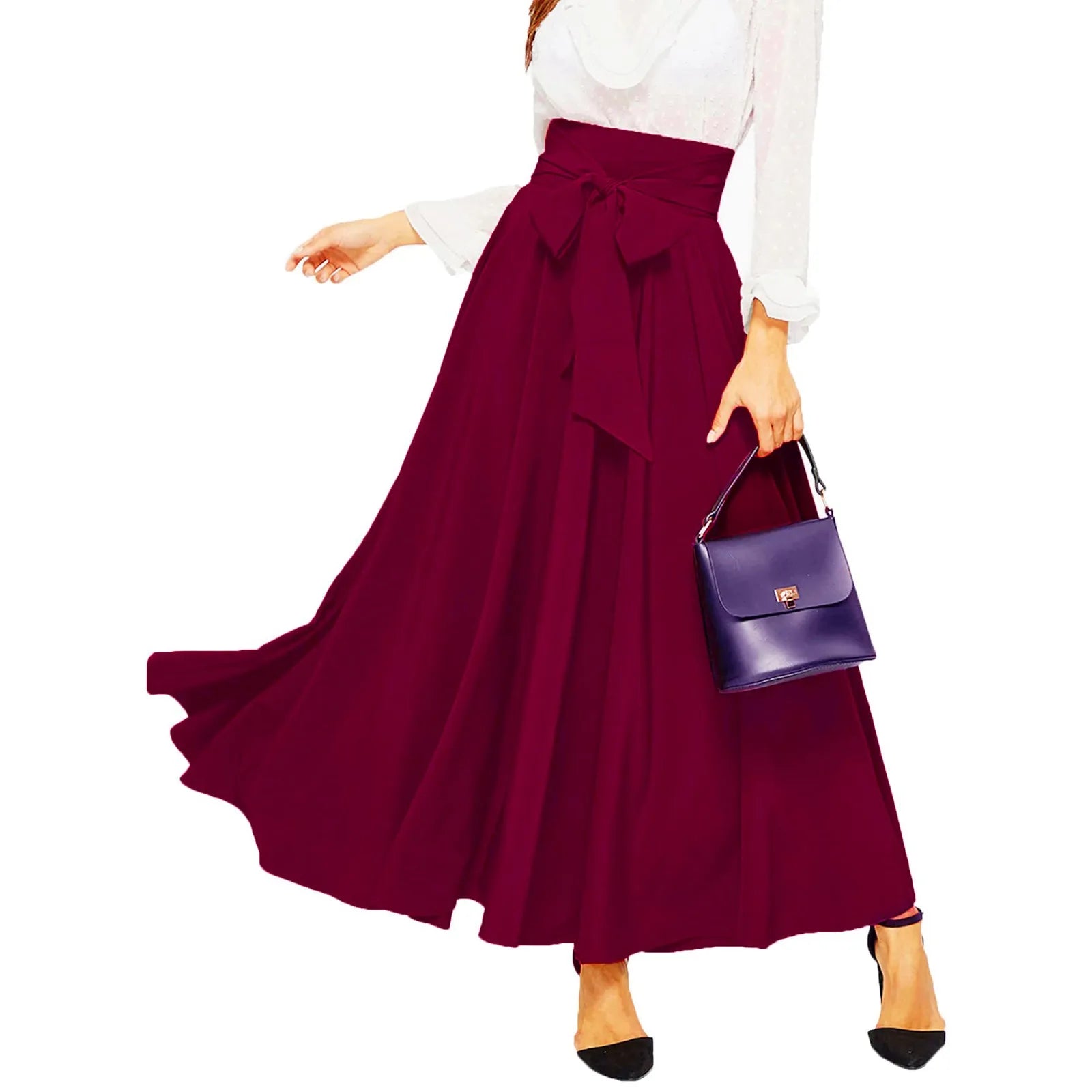 1 * Elegant Temperament High Waist Front Bow Tie Pleated A Line Skirt