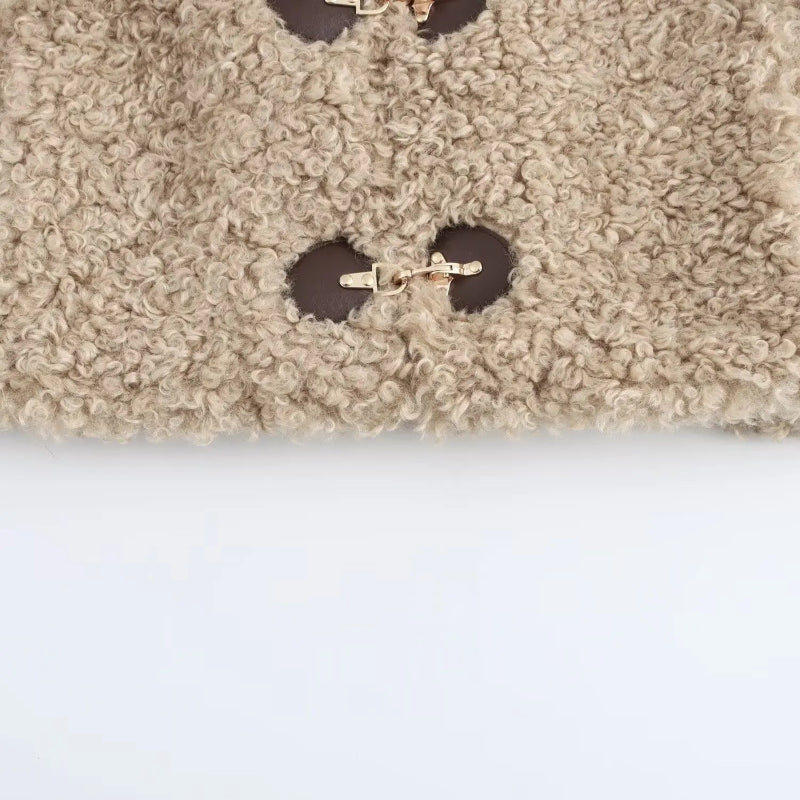 1 * Winter Jacket with Flip Collar Long Sleeve Coat with Rope Buckle