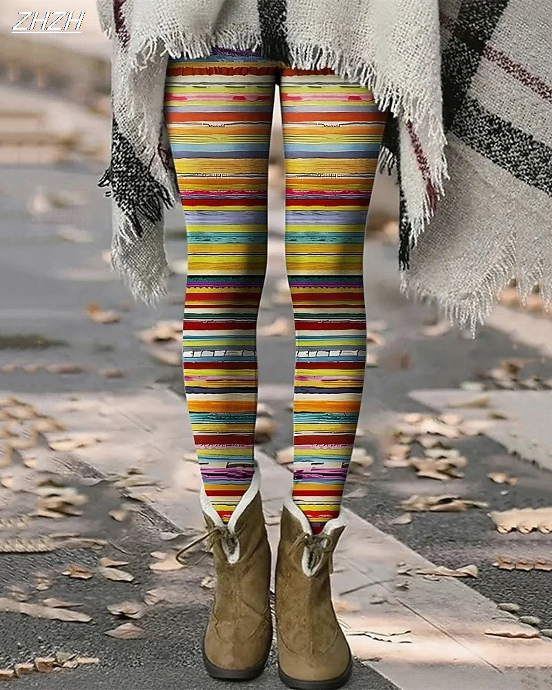 Step into bold comfort and effortless style with these Striped Printed Leggings Stretch Elastic Waist Outdoor Pants from Arimonz, designed for outdoor wear, casual outfits, and streetwear looks during fall and winter. Made from a polyester–spandex blend, these leggings offer excellent stretch, flexibility, and a flattering fit that moves with you all day.