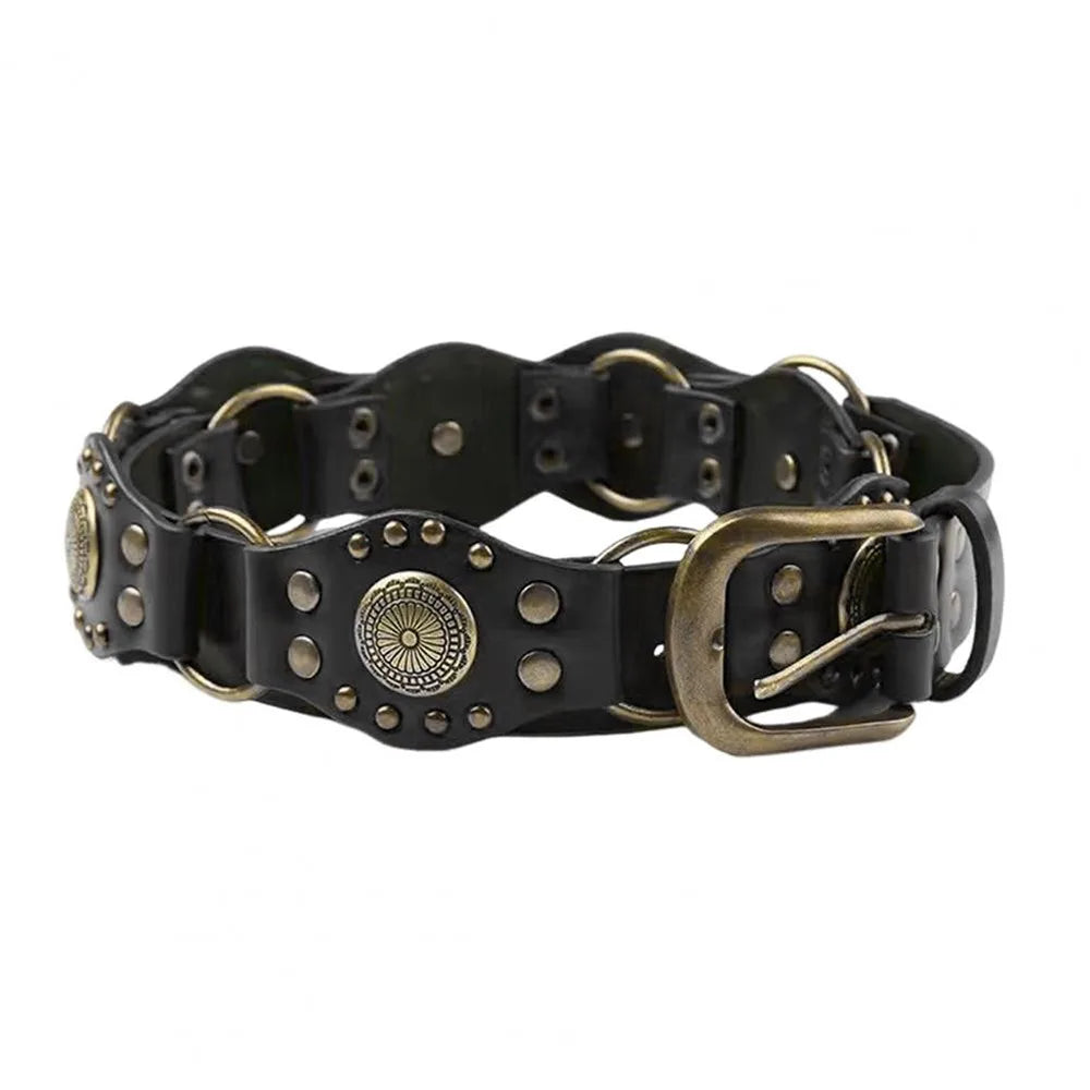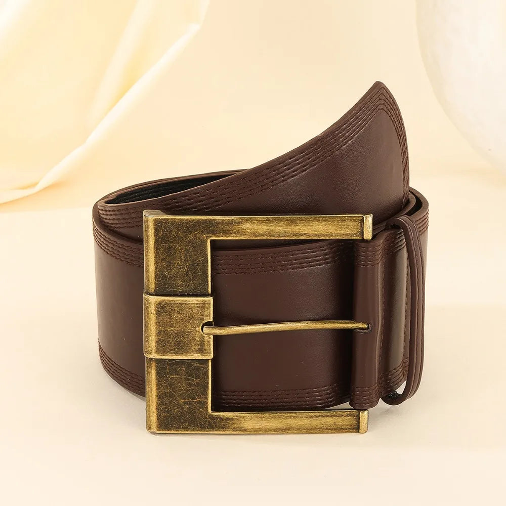 1 * Y2k Retro Leather Belt Luxury Pin Buckle Belt Metal Engraved Buckle