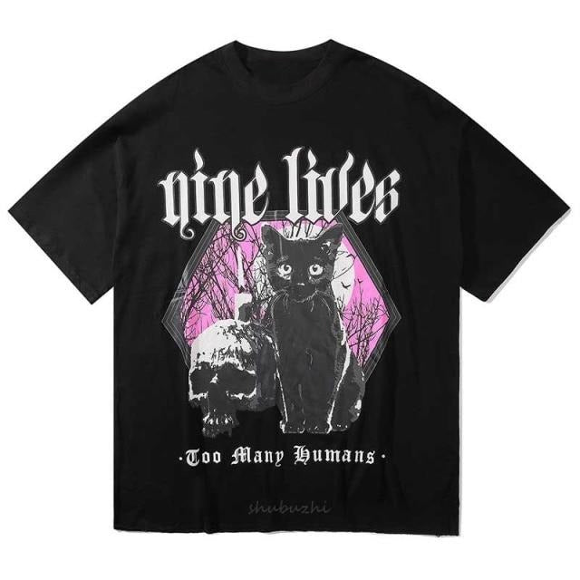 Women Gothic Funny Print Cat T-shirt Streetwear Short Sleeve Tee Top