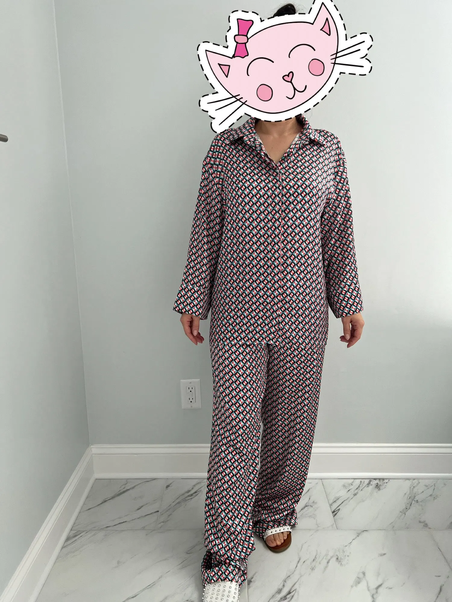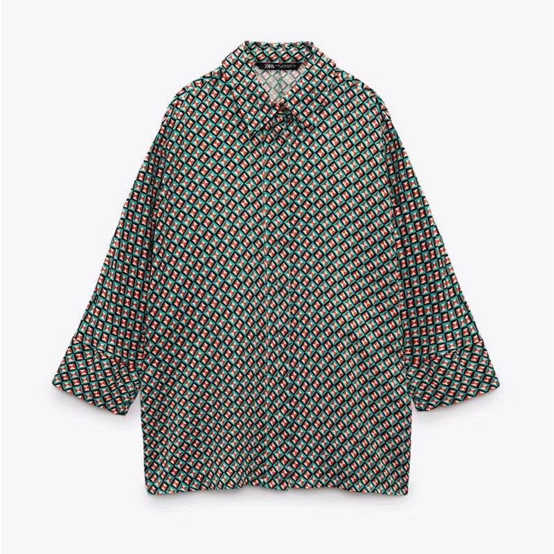1 *Women's Geometric Pattern Print Long-sleeved Button-down Shirt