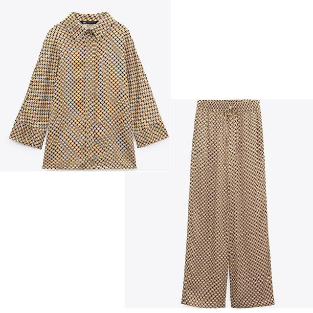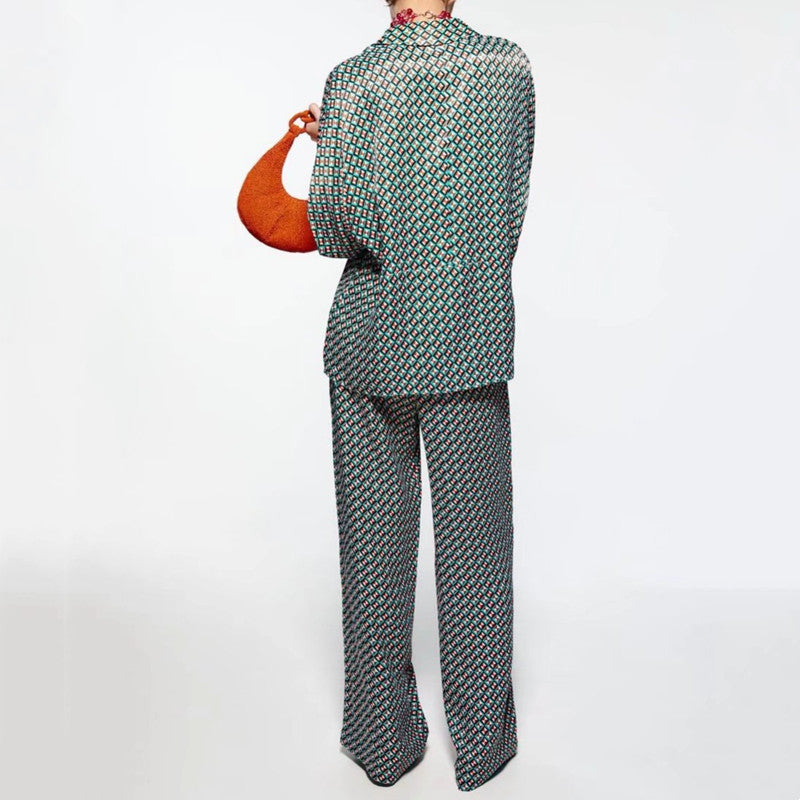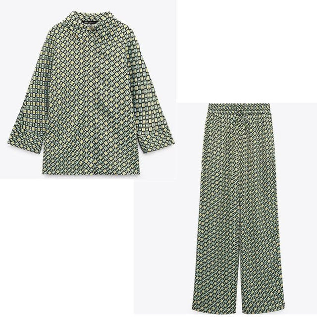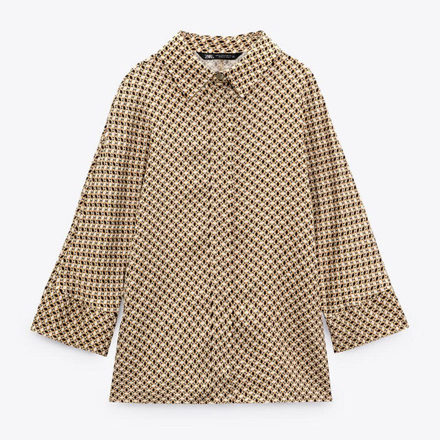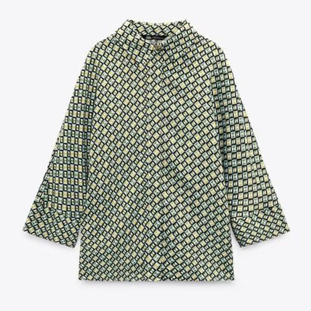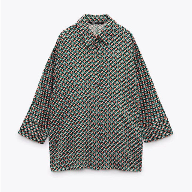 Women's Geometric Pattern Print Long-sleeved Button-down Shirt