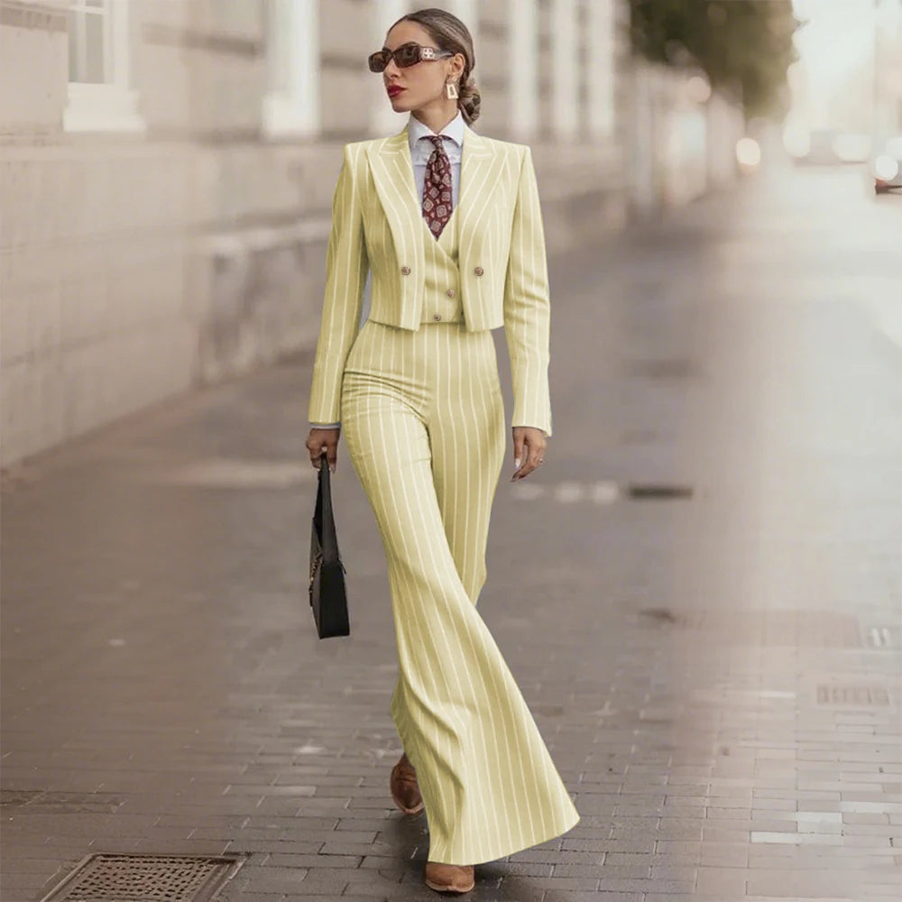 1 * Striped Double-Breasted 3pcs Suit Jacket Pants and Vest Office Outfit