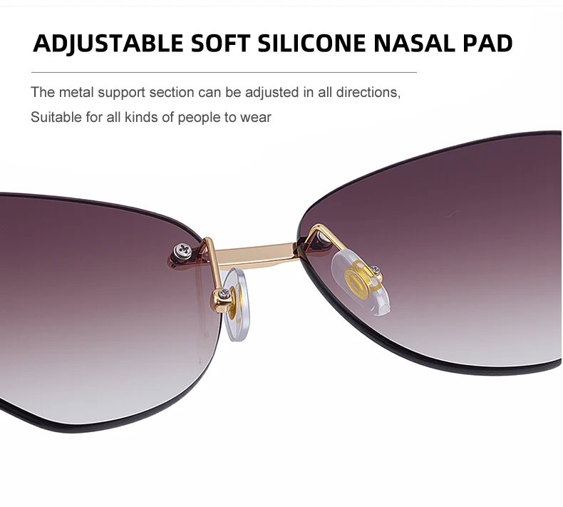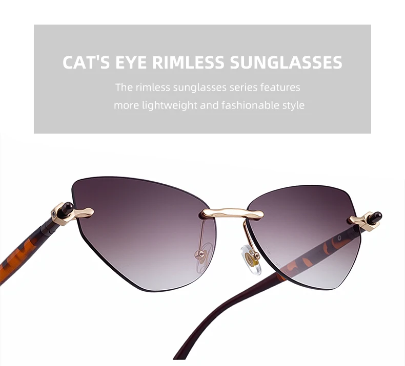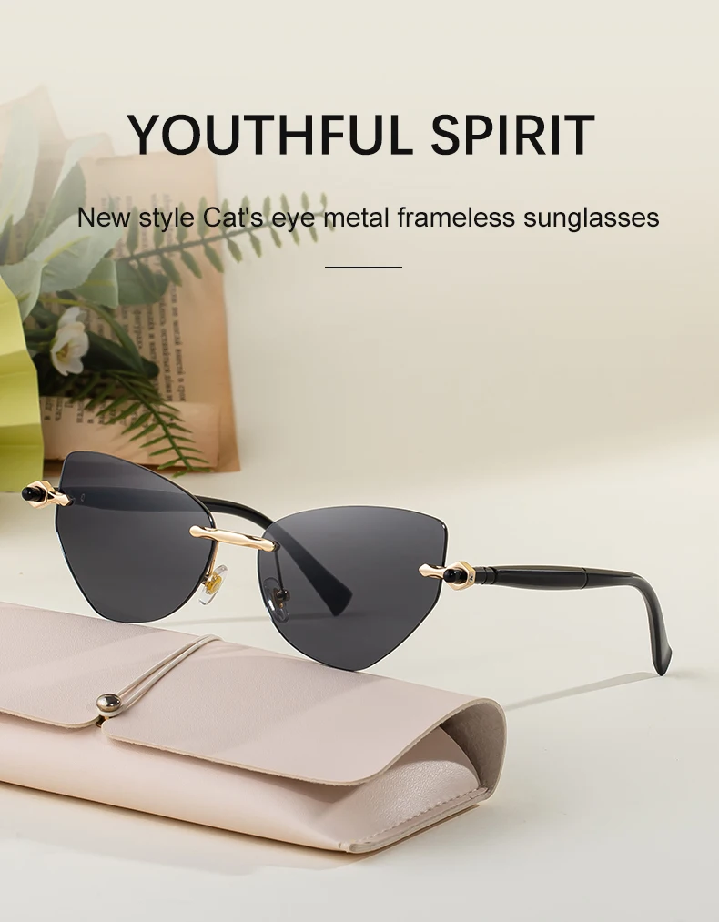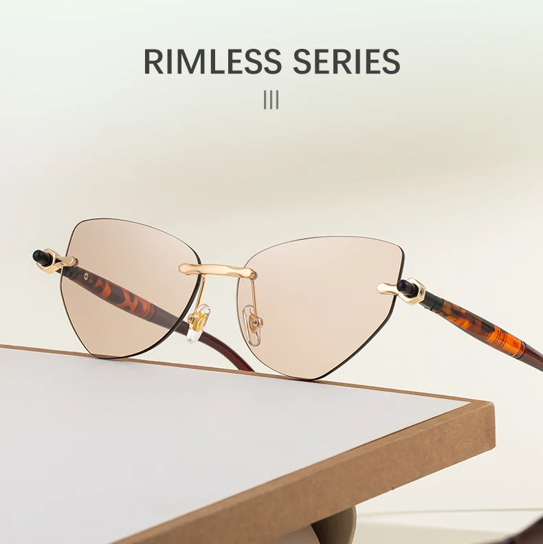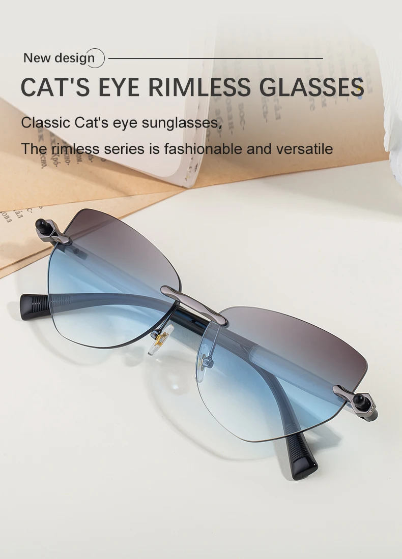 Cat Eye Frameless Rimless Sunglasses Luxury Fashion Polygon Shades