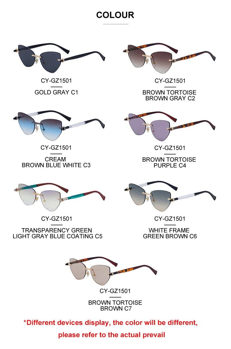 1 * Cat Eye Frameless Rimless Sunglasses Luxury Fashion Polygon Shades