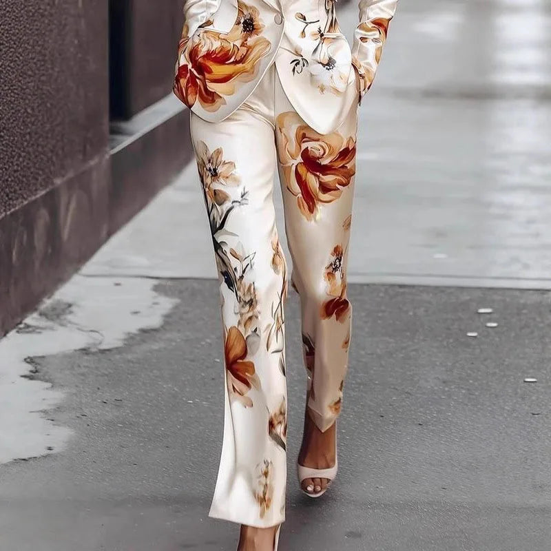 📌Stylish 2-piece outfit: floral print blazer + long pants
