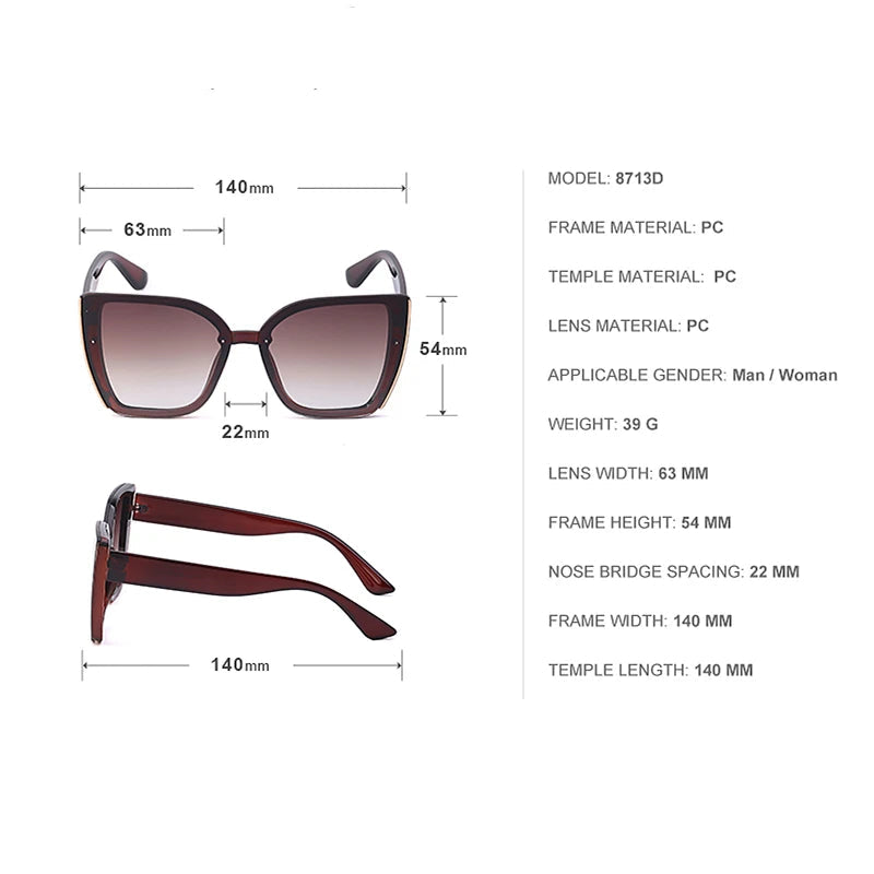 Oversized Cat Eye Sunglasses Luxury Brand Big Frame Square Shades